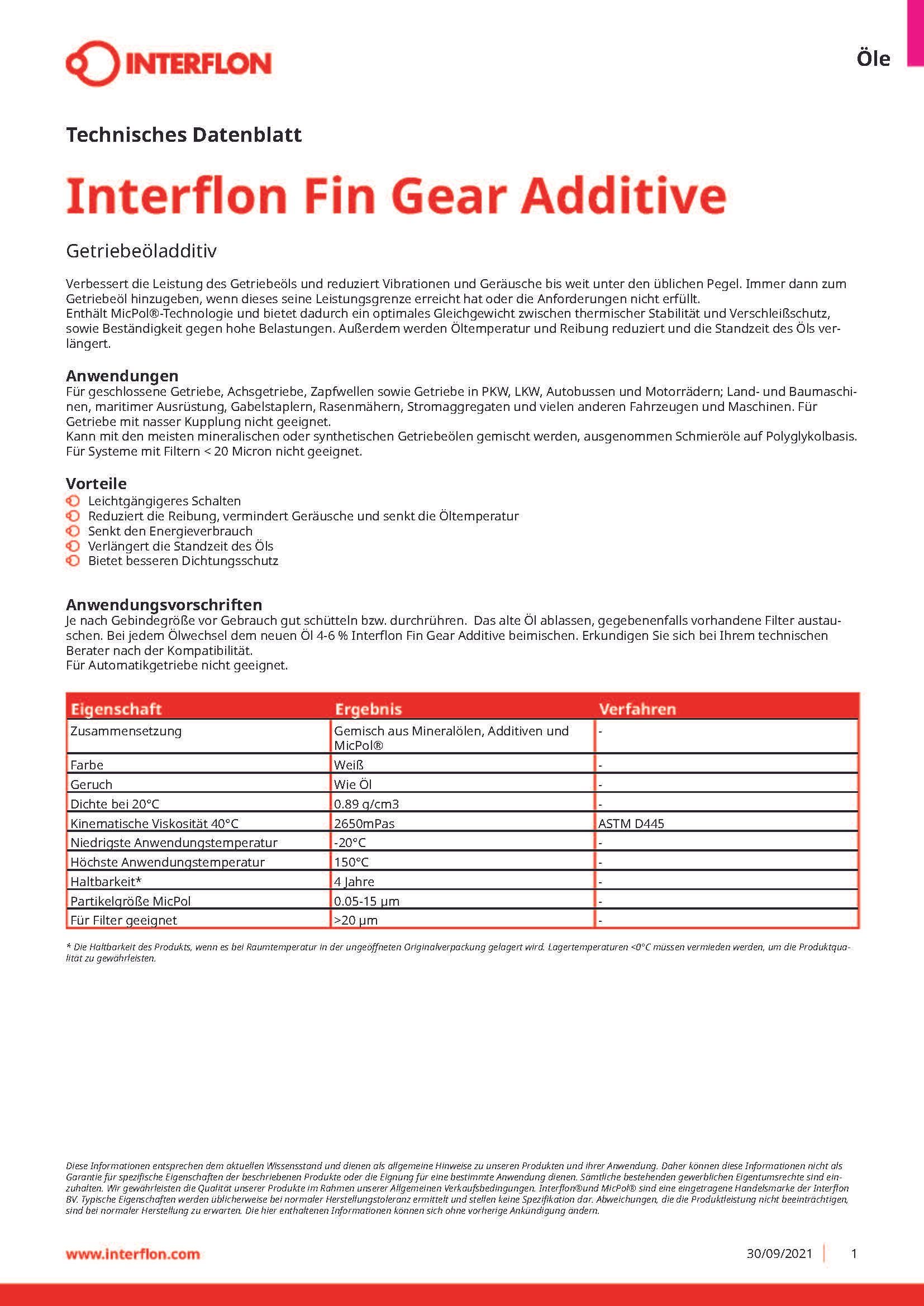 Interflon FIN Gear Additive 100 ml Getriebeölverstärker Verschleißschutz MicPol