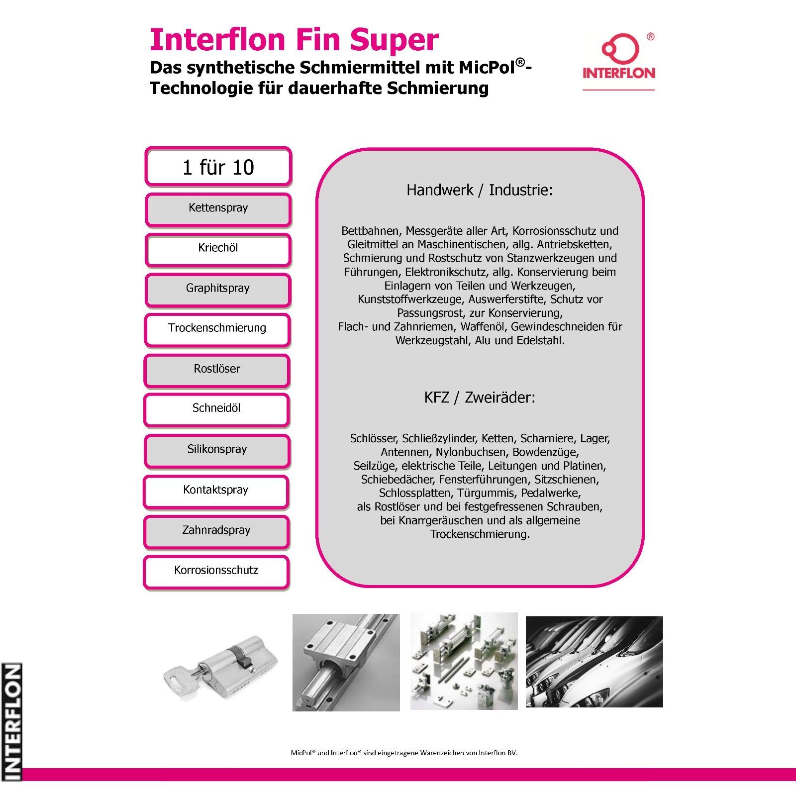 Interflon Fin Super Dry Lube 50ml Flasche Trockenschmiermittel Kriechöl MicPol