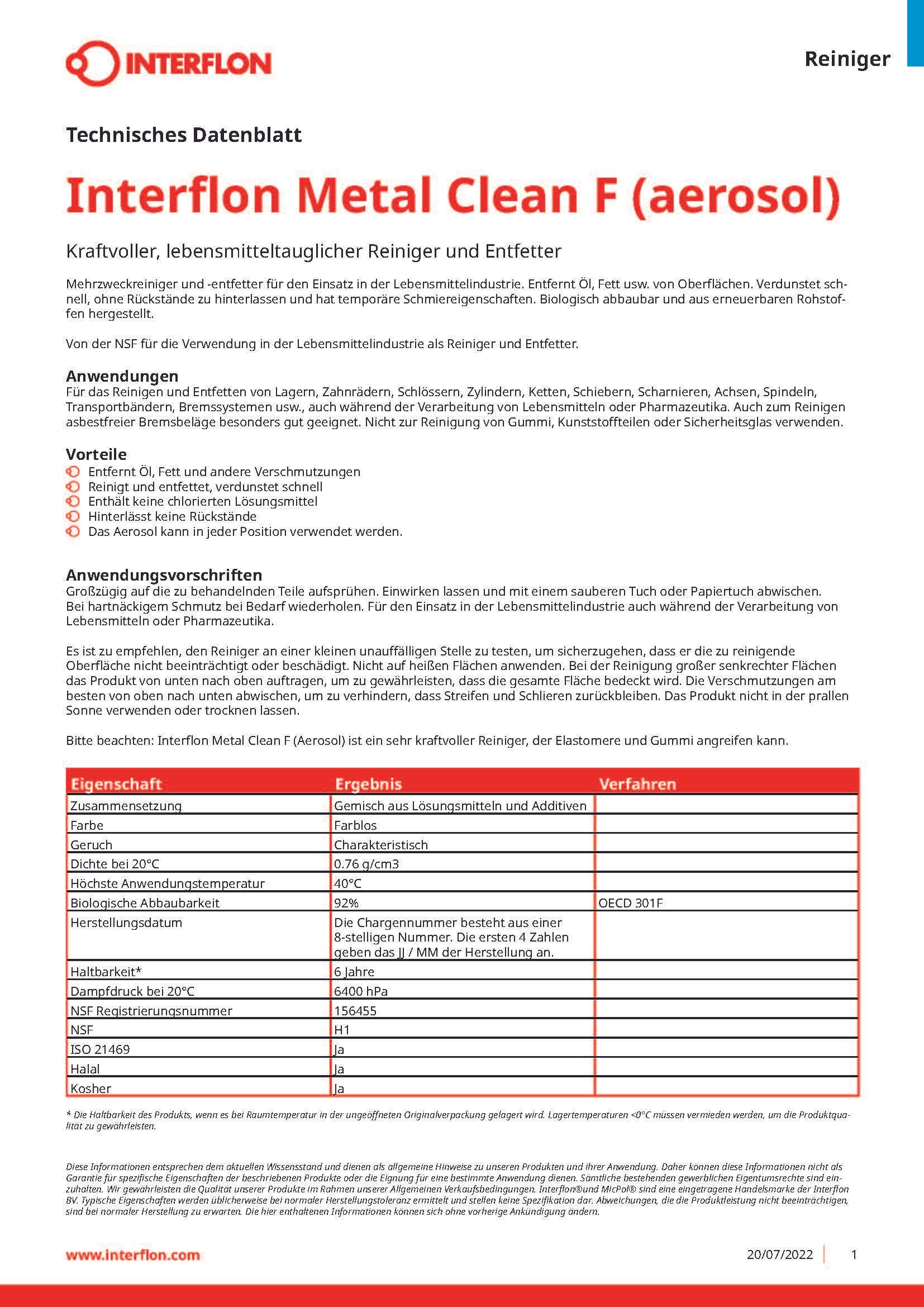 Interflon Metal Clean Sprühdose 500 ml Metallreiniger Entfetter F-Active