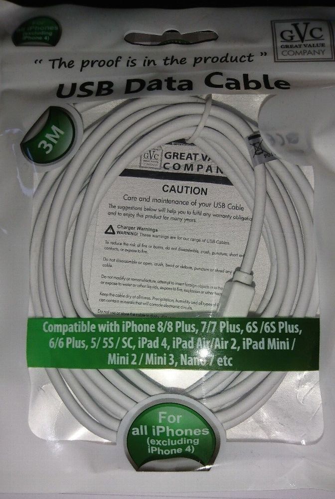 IPhone 3 Meter USB Data Cable für IPhone und Ipad. NEU in eingeschweißten ungeöf. OVP