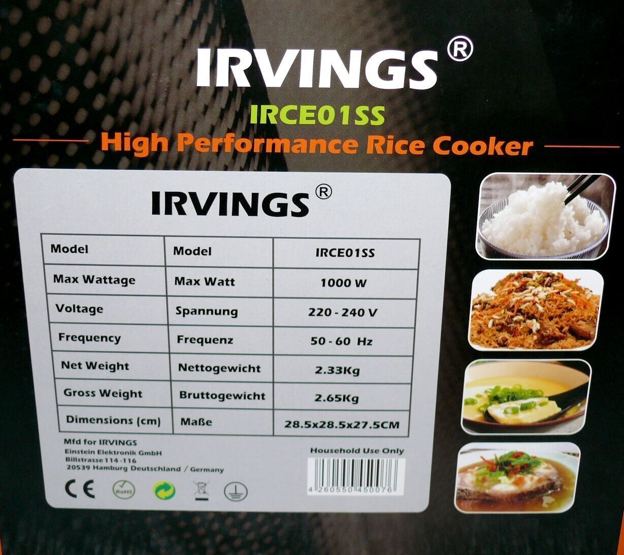IRCE01SS Multi Reiskocher Gemüse Dampf Garer Schnell Kochtopf 2,2L 1000W Edelsta