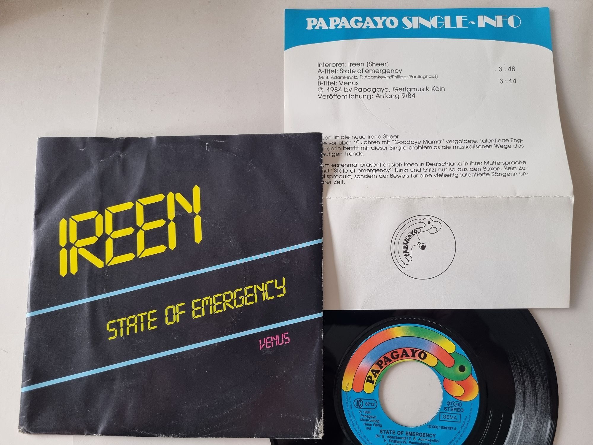 Ireen Sheer - State of Emergency 7'' Vinyl Germany WITH PROMO FACTS