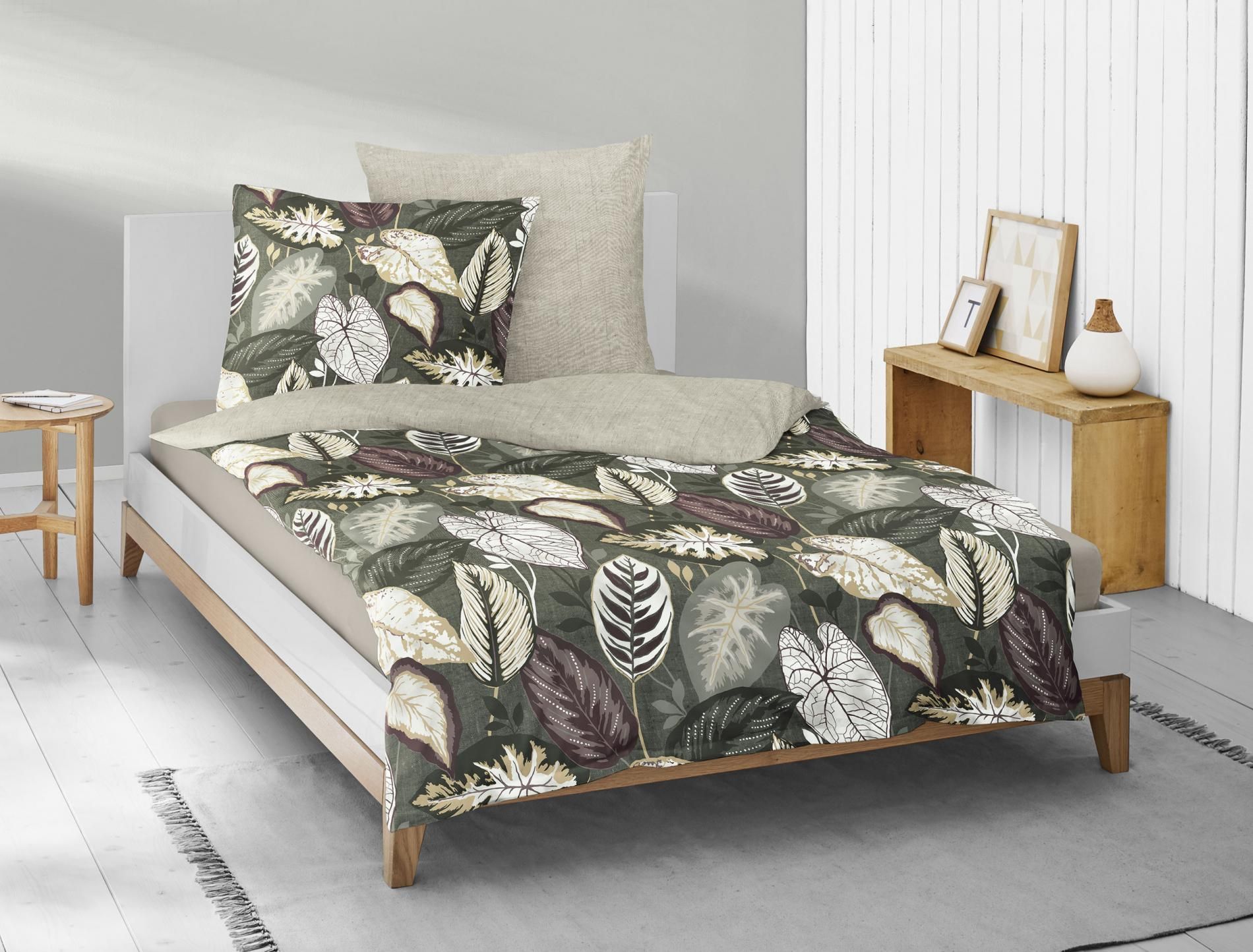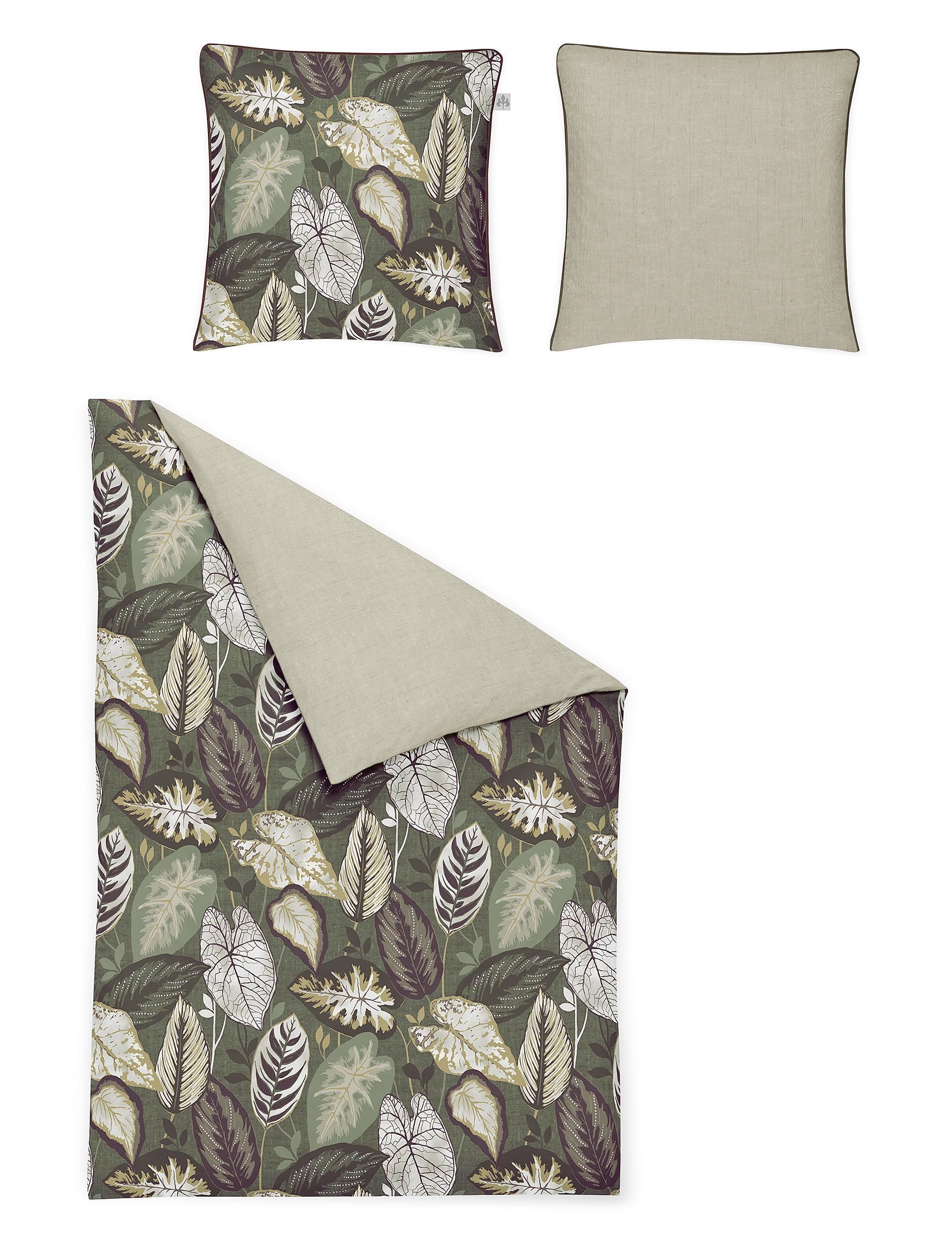 Irisette Irisette Crown Mako-Satin Bettwäsche 135x200 Wende Blätter grün creme 8402-90