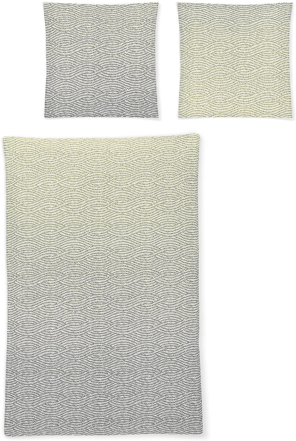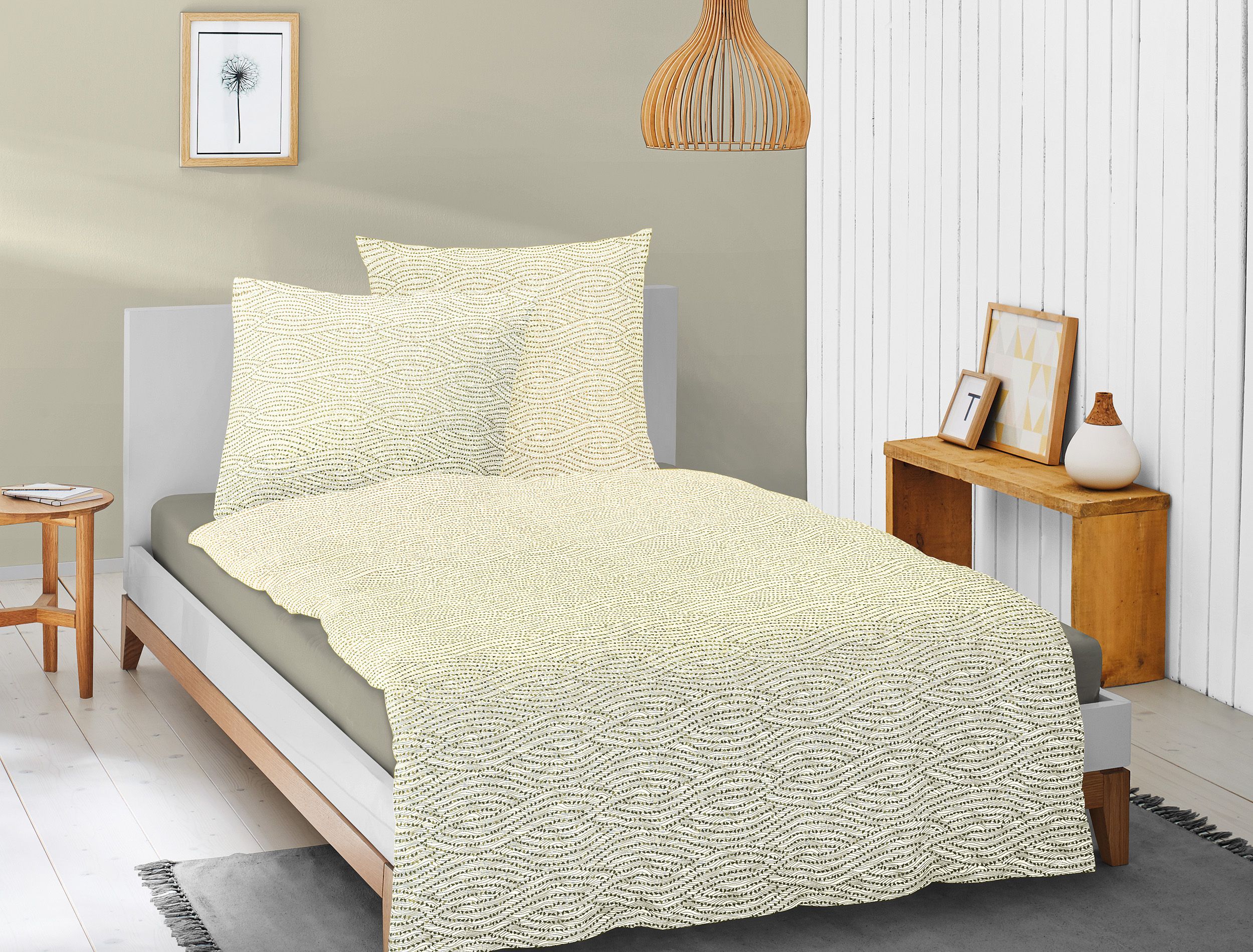 Irisette Irisette Feinbiber Bettwäsche Feel 155x220 Strickmuster beige grün Zöpfe 8323-30
