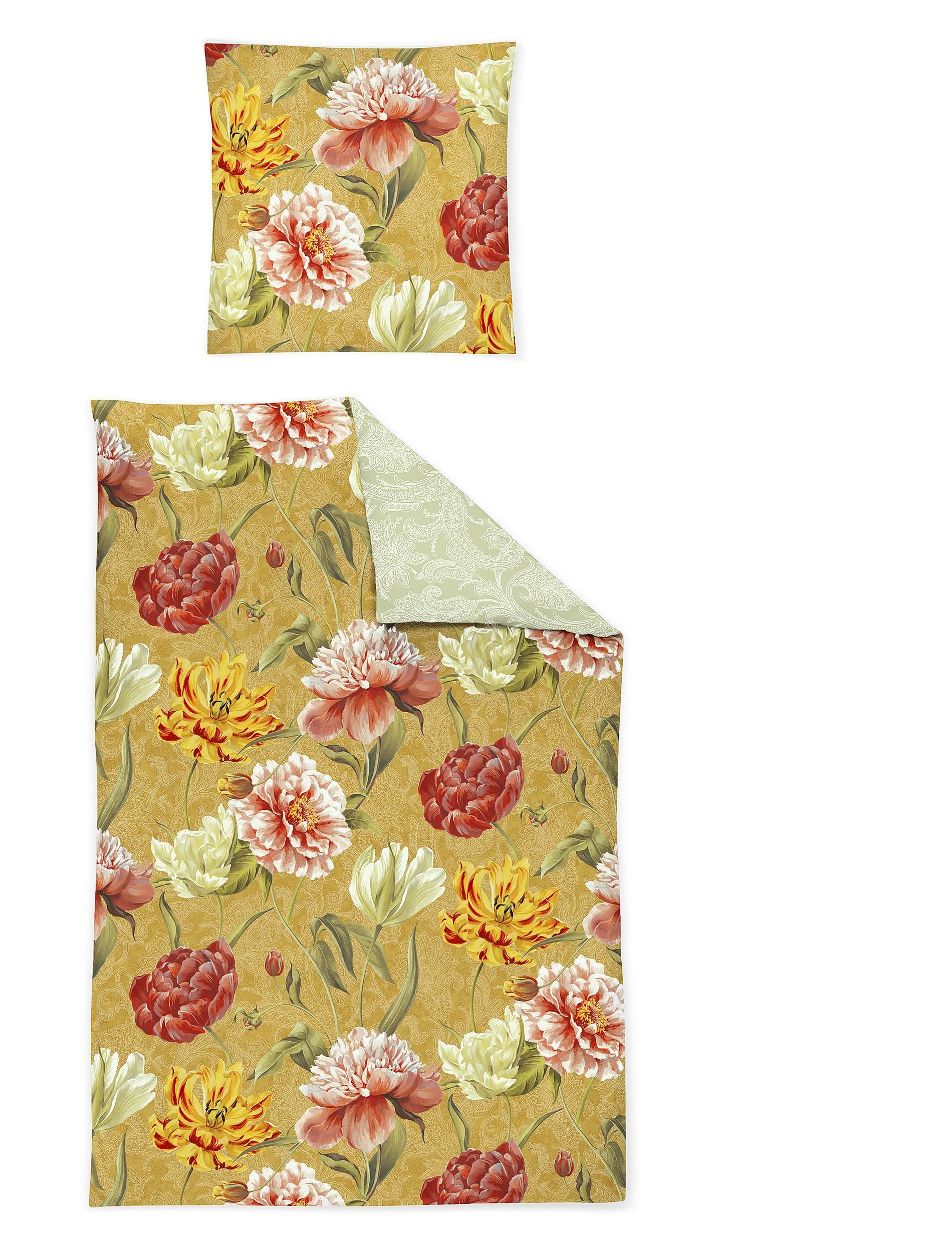 Irisette Irisette Magic Mako-Satin Bettwäsche 155x220 Blumen Wende gold jade 8856-40