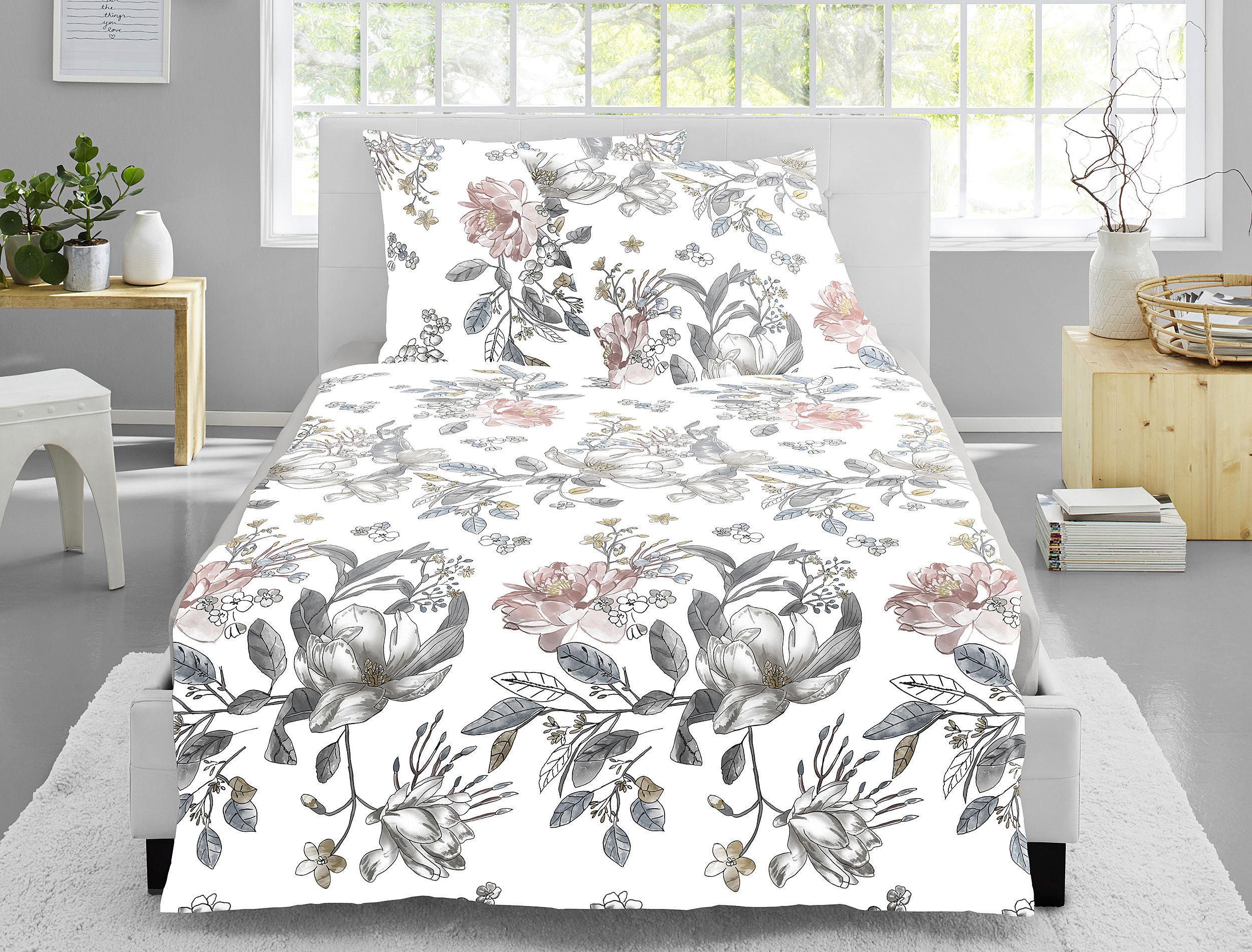 Irisette Irisette Nova Mako-Satin Bettwäsche 135x200 Magnolie stone weiß Blüten 8388-11