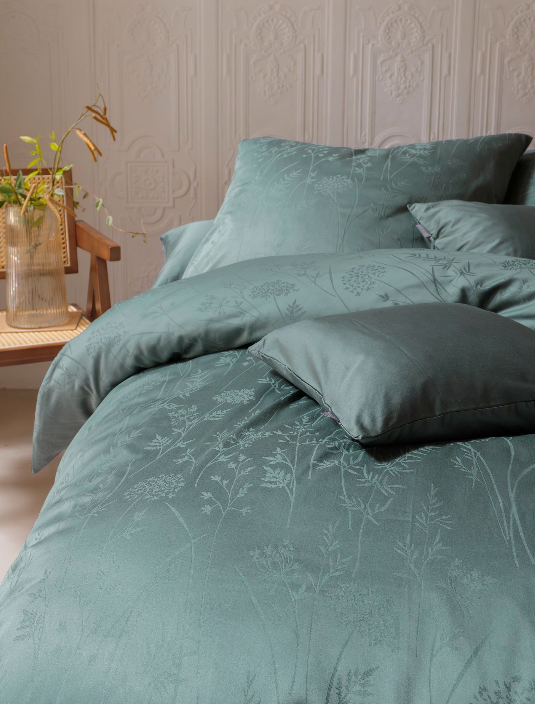 Irisette Premium Jacquard Bettwäsche Rio 135x200 Gräser grün salbei uni 8643-30
