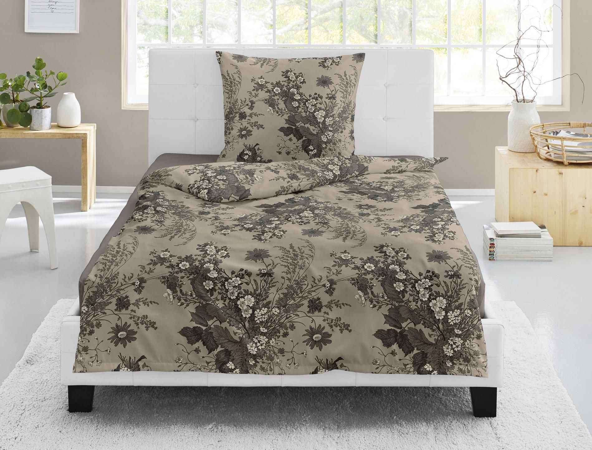 Irisette Irisette Sky Mako-Satin Bettwäsche 155x220 Blüten Blumen natur schwarz 8396-80