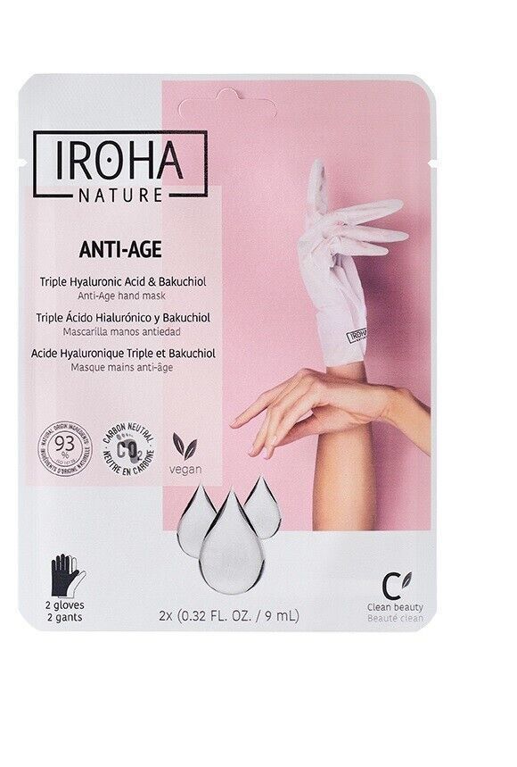 Iroha Nature Handschuhe Anti-Age IROHA 15 Paar Anti-Aging Handschuhmasken für Hände und Nägel mit Pearl + 16 Frucht- und Blütenextrakten, Vitamin E und Urea. Hilft, die Festigkeit wiederherzustellen und der Hautalterung vorzubeugen, dank seiner antioxidativen und feuchtigkeitsspendenden Wirkstoffe,