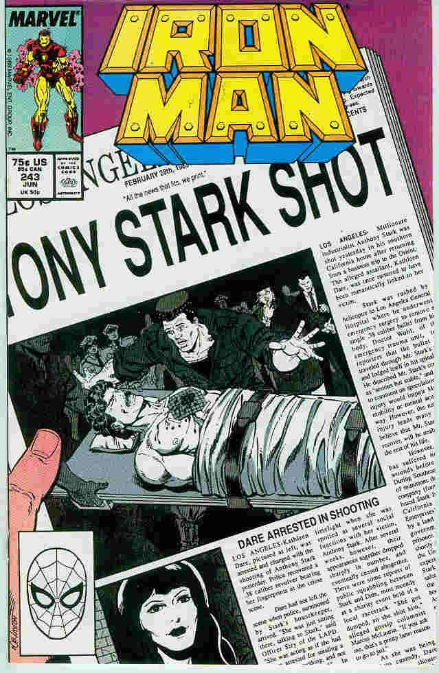 Iron Man 243 Verlag * publisher : Marvel Comics USA Erscheinungsjahr * year of issue: 1989 (Copper Age) Seitenzahl * number or pages: 32 Texter * writer: Davis Michelinie Zeichner * artists (pencils inks): Bob Layton Barry Windsor-Smith schwarz-weiß oder Farbe * bw or colour: colour Hinweise zum Inh