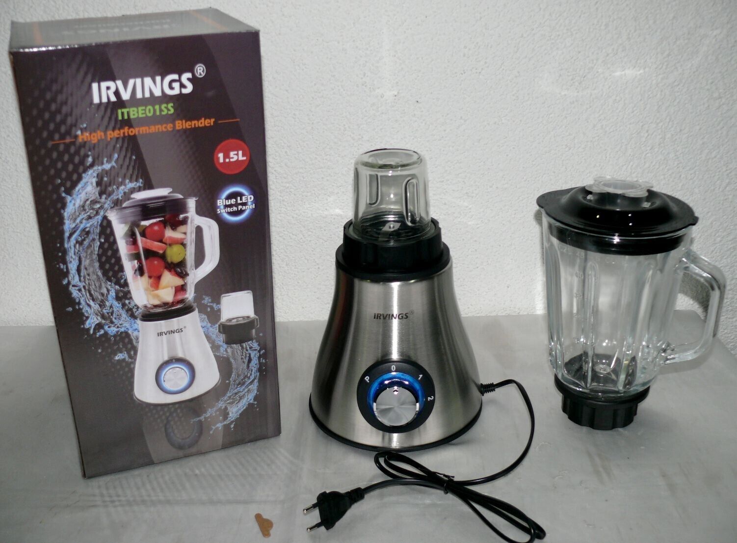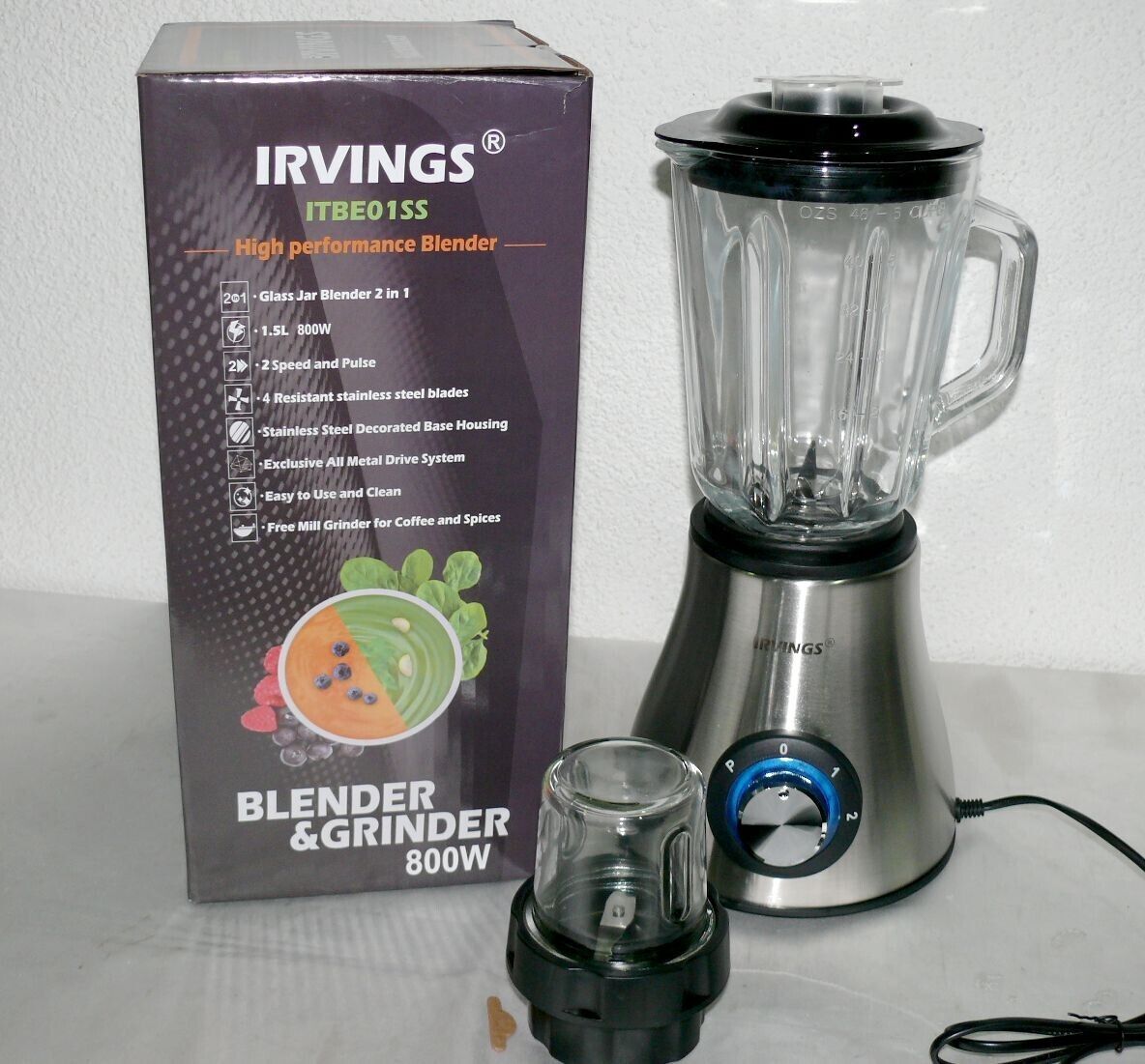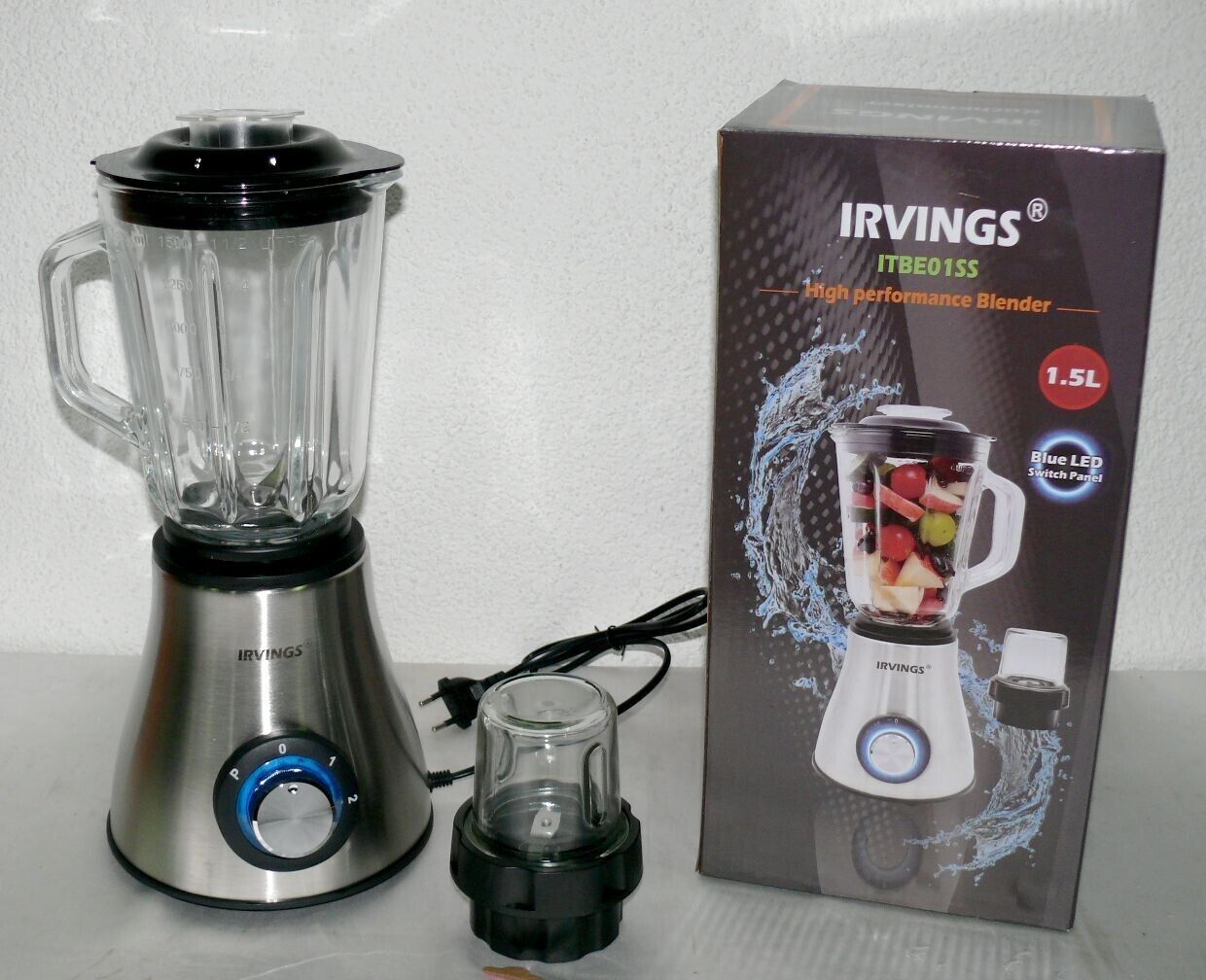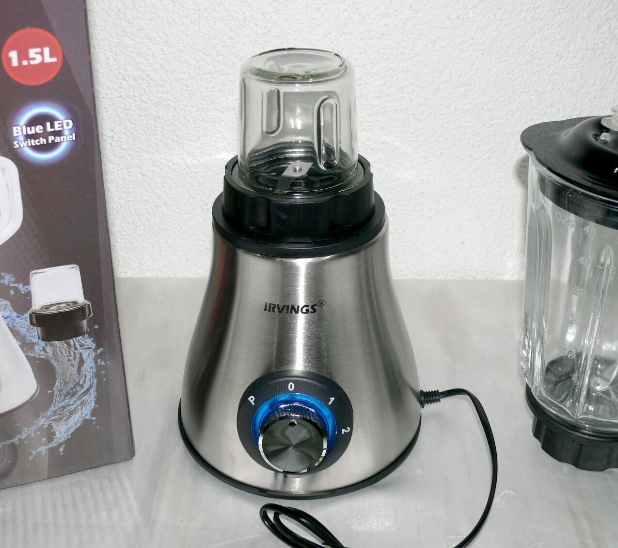Irvings ITBE01SS Standmixer Glas Kanne 1,5L Mixer Kaffeemühle Edelstahl 6 Flügel