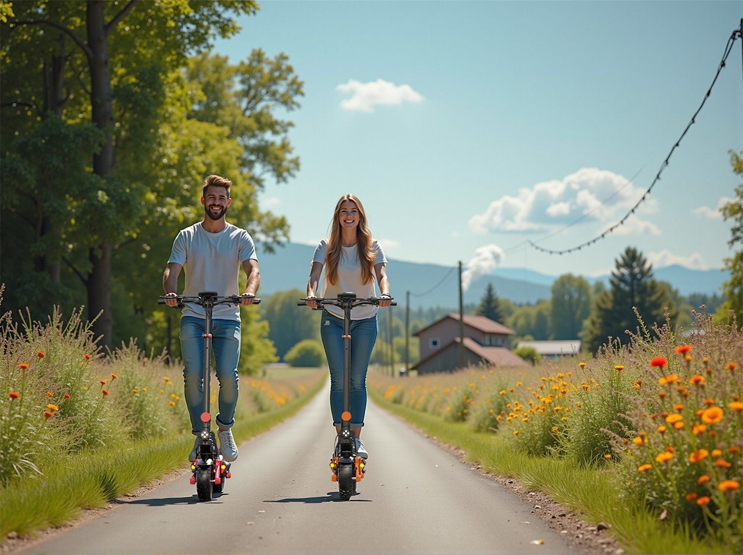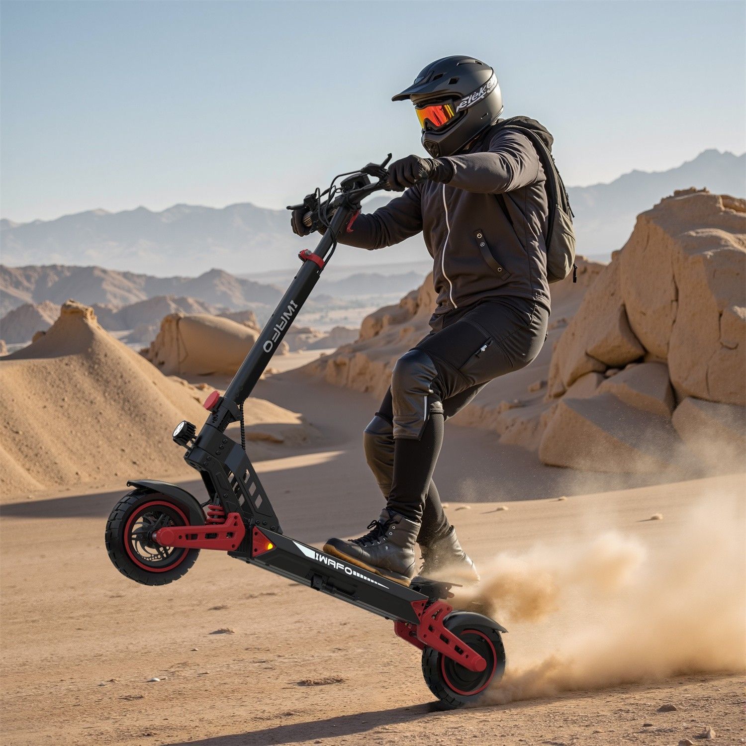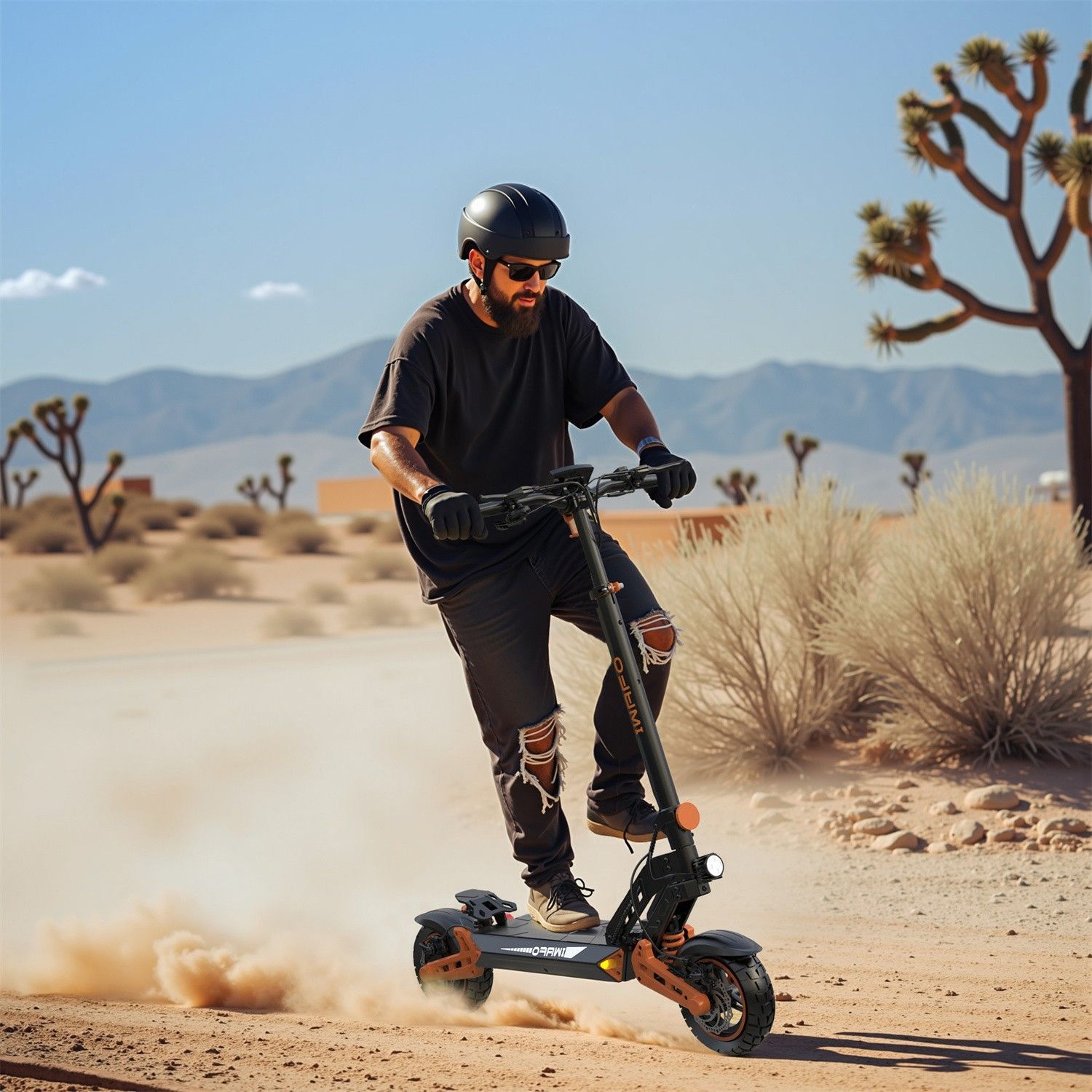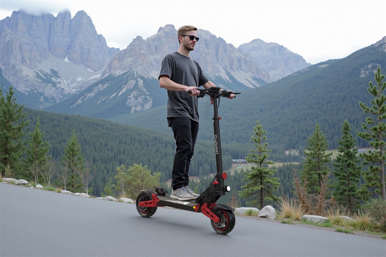 Für schwieriges Gelände Ausgestattet mit robusten Reifen und einem leistungsstarken Motor bewältigt dieser E-Scooter mühelos jedes Gelände, vom Stadtpflaster bis hin zu unebenen Feldwegen. So können Sie alles erkunden, was Sie möchten. Sicheres Fahren Dieser E-Scooter wurde mit Blick auf Ihre Sicher