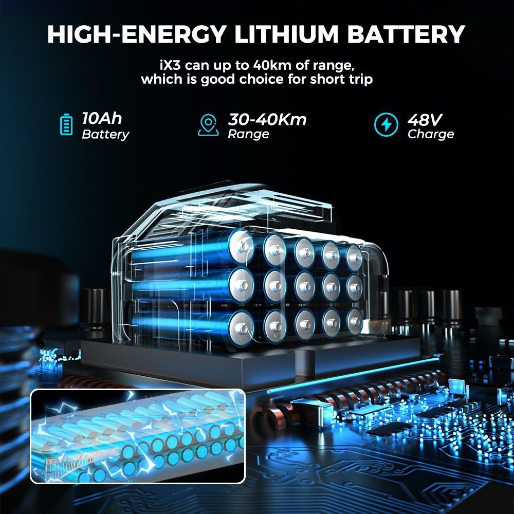 iScooter iX3 Gelände Elektroroller,800W Motor, batterie 48V10Ah, Smart App