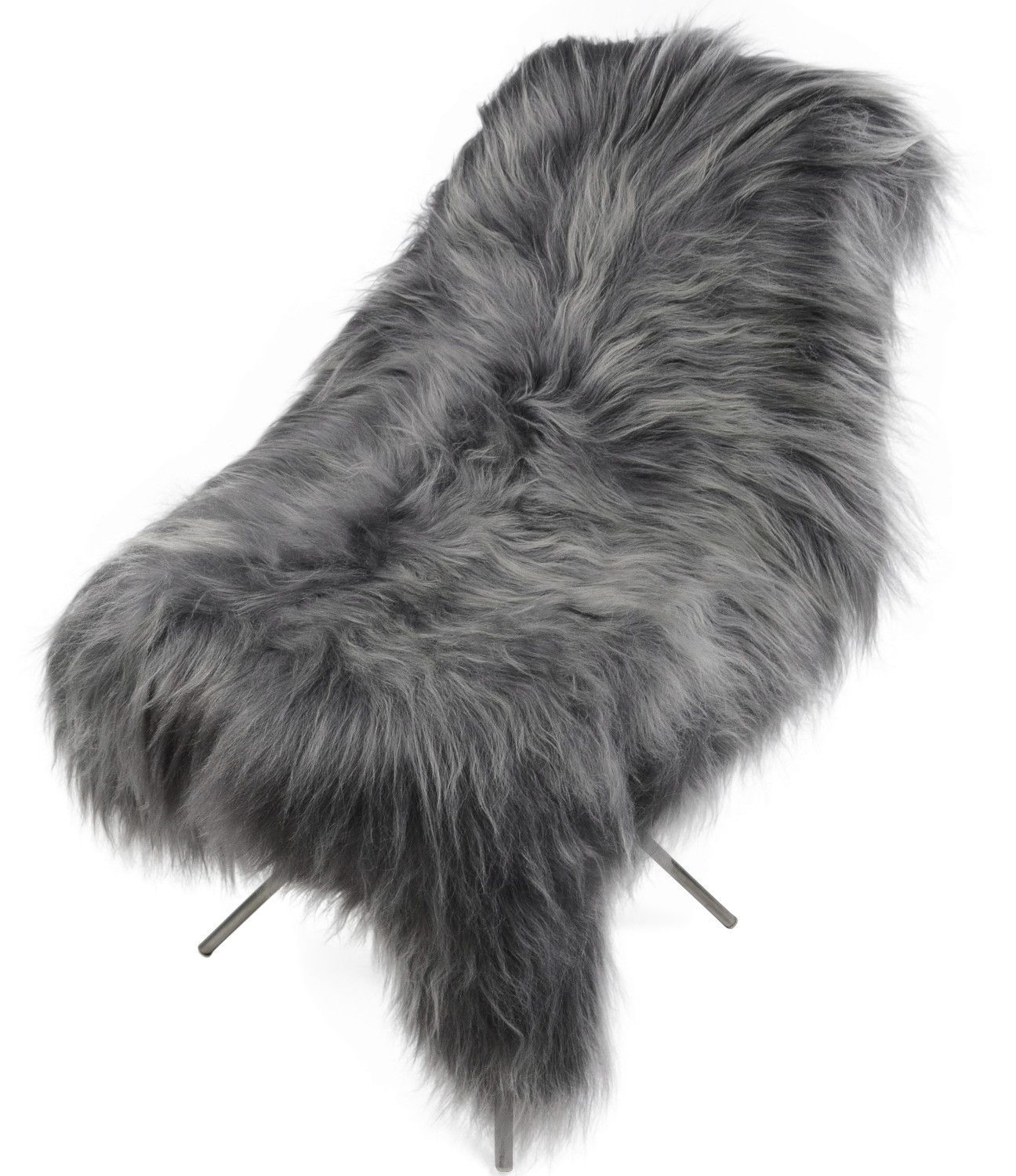 Island Lammfell Schaffell Leder Fell-Teppich ökologisch gegerbt grau gecheckt