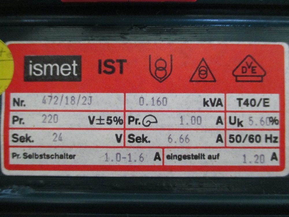 Ismet Transformator IST Trafo pri.220V + / - 5% sek.24V 6,66A 160 VA T9/880