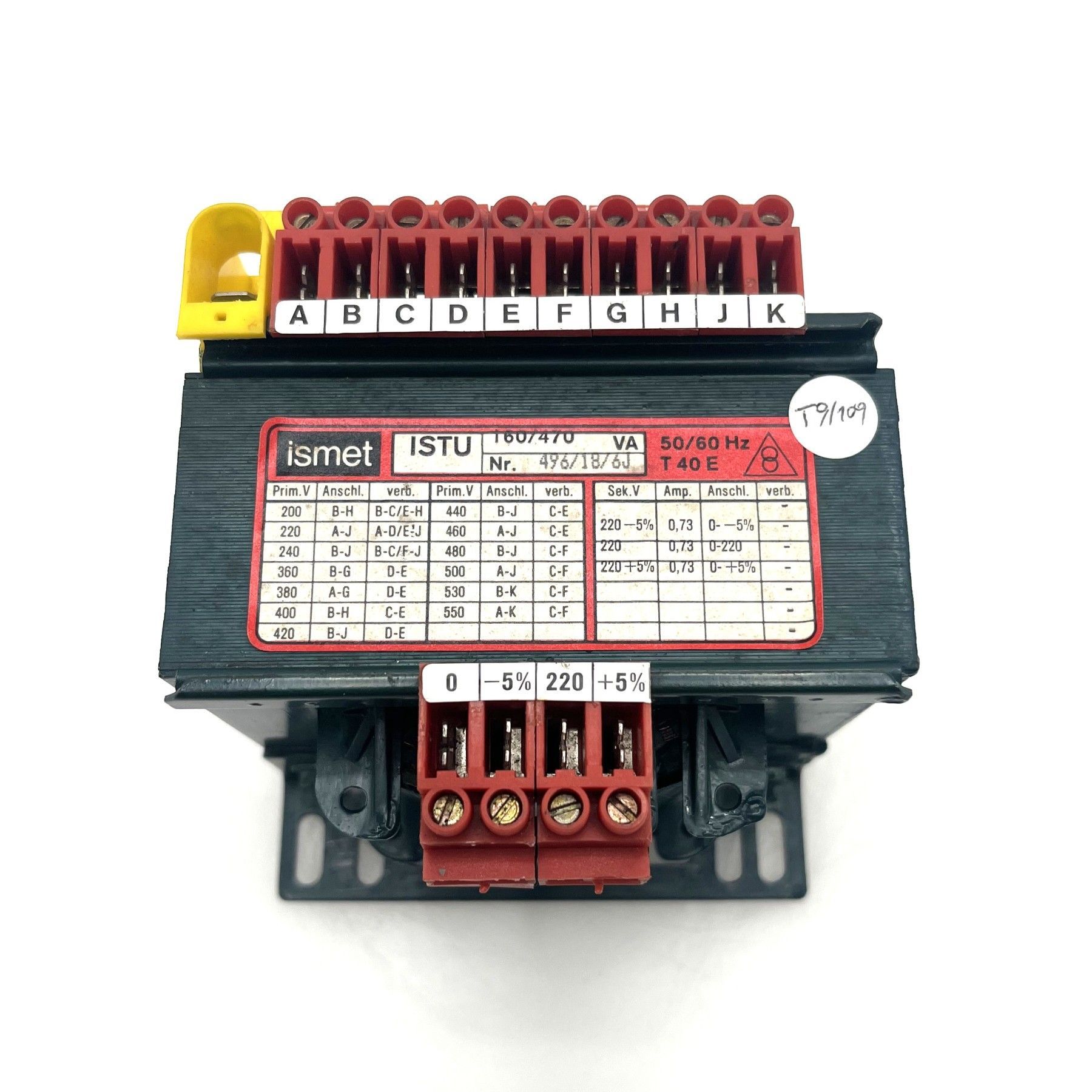 Trafo ISMET Typ ISTU Nr. 496 18 6J pri 200 V, 220 V, 240 V, 360 V, 380 V, 400 V, 420 V, 440 V, 460 V, 480 V, 500 V, 530 V, 550 V sec 220 V + - 5% 160 470 VA Gewicht: 3,42 kg Maße LxBxH: 105x98x100 mm Sicherheits-, Funktionsprüfung und Isolationsmessung nach VDE durchgeführt Zustand: neuwertig (war n... Mehr
