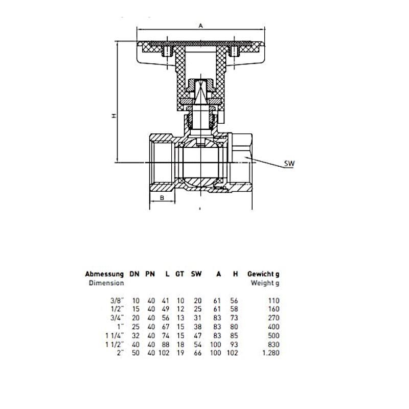 ISO-T Kugelhahn 1/2" - 2" für Heizung, Druckluft und Wasser, bis 120°C, 20 bar