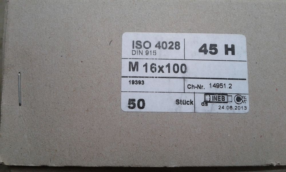 ISO4028 45H M16x100 blank Gewindestift mit Zapfen Innensechskant (DIN 915) 5 Stk