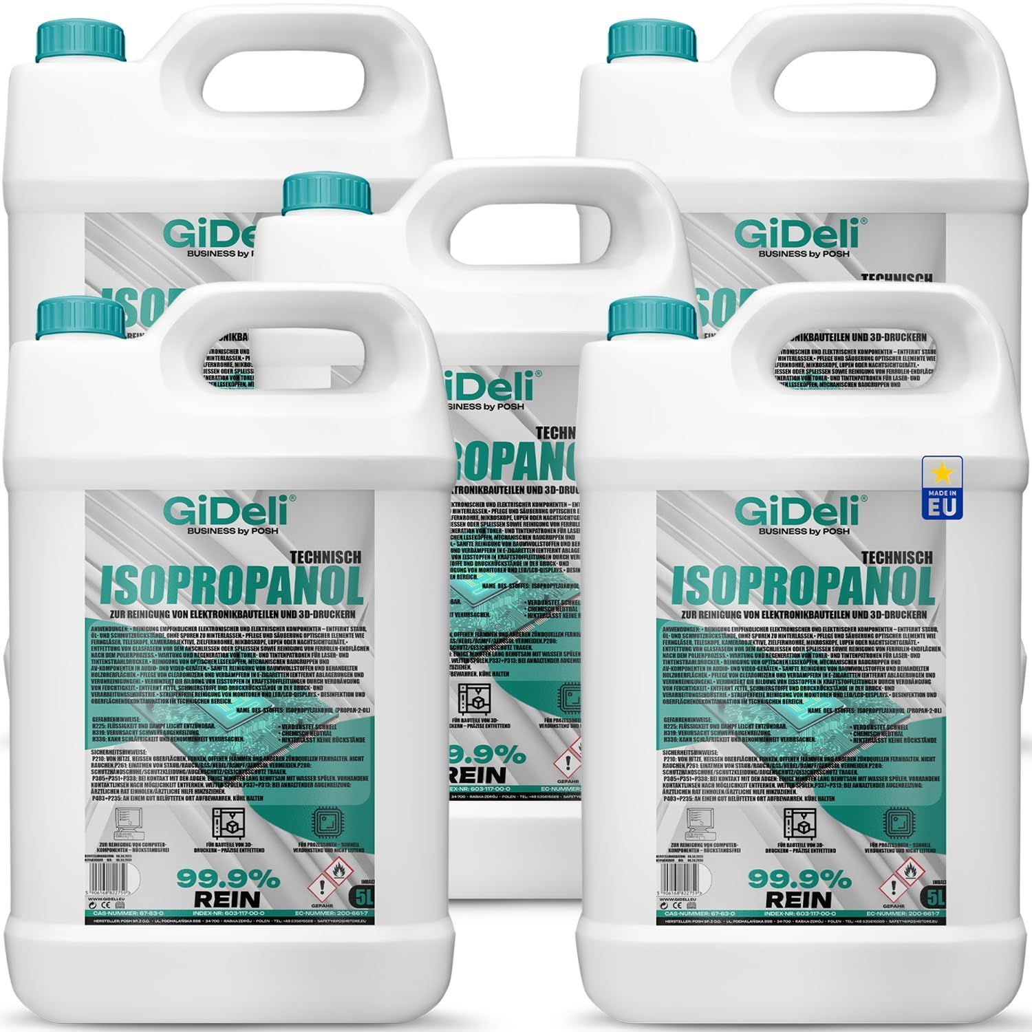 Isopropanol 25L Technisch 99,9% IPA Reiniger & Entfetter für Industrie GiDeli