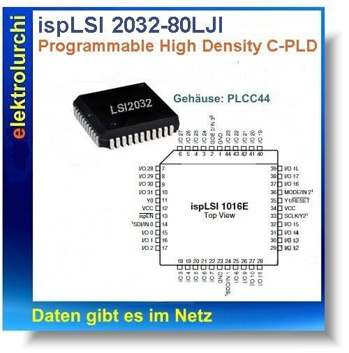 isp LSI2032-80LJI, PLD Programmierbare Logik, PLCC44, CMOS, Lattice, 1St.