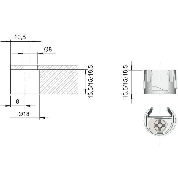 Italiana ferramenta Einbohrteil PK2 Tablarstärke 18/19mm Bohr ø 18mm mit Exzenter K