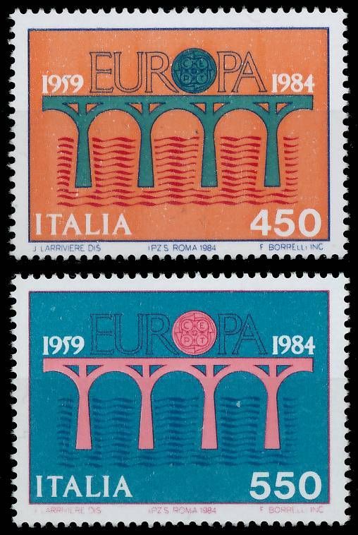 ITALIEN 1984 Nr 1886-1887 postfrisch Ausgabe Europa Gemeinschaftsausgaben CEPT 1984 2.66€ incl. MwSt: Differenzbesteuert zzgl. Versandkosten Bestell-Nr.: 5B956A Katalog-Nr: MICHEL (1886 - 1887) Katalogpreis: 7 EUR Qualität: Normal Erhaltung: Postfrisch ** Einheit: Satz Bogenlage: Gummierung: Ge