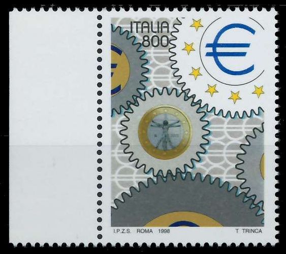 ITALIEN 1998 Nr 2603 postfrisch SRA 800 L Wert aus der Ausgabe Europatag, Briefmarkenausstellung ITALIA 98 in Mailand 0.44€ incl. MwSt: Differenzbesteuert zzgl. Versandkosten Bestell-Nr.: 61F292 Katalog-Nr: MICHEL (2603) Katalogpreis: 1,20 EUR Qualität: Normal Erhaltung: Postfrisch ** Einheit: