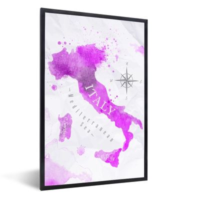 Poster - 40x60 cm - Weltkarte - Rosa - Italien