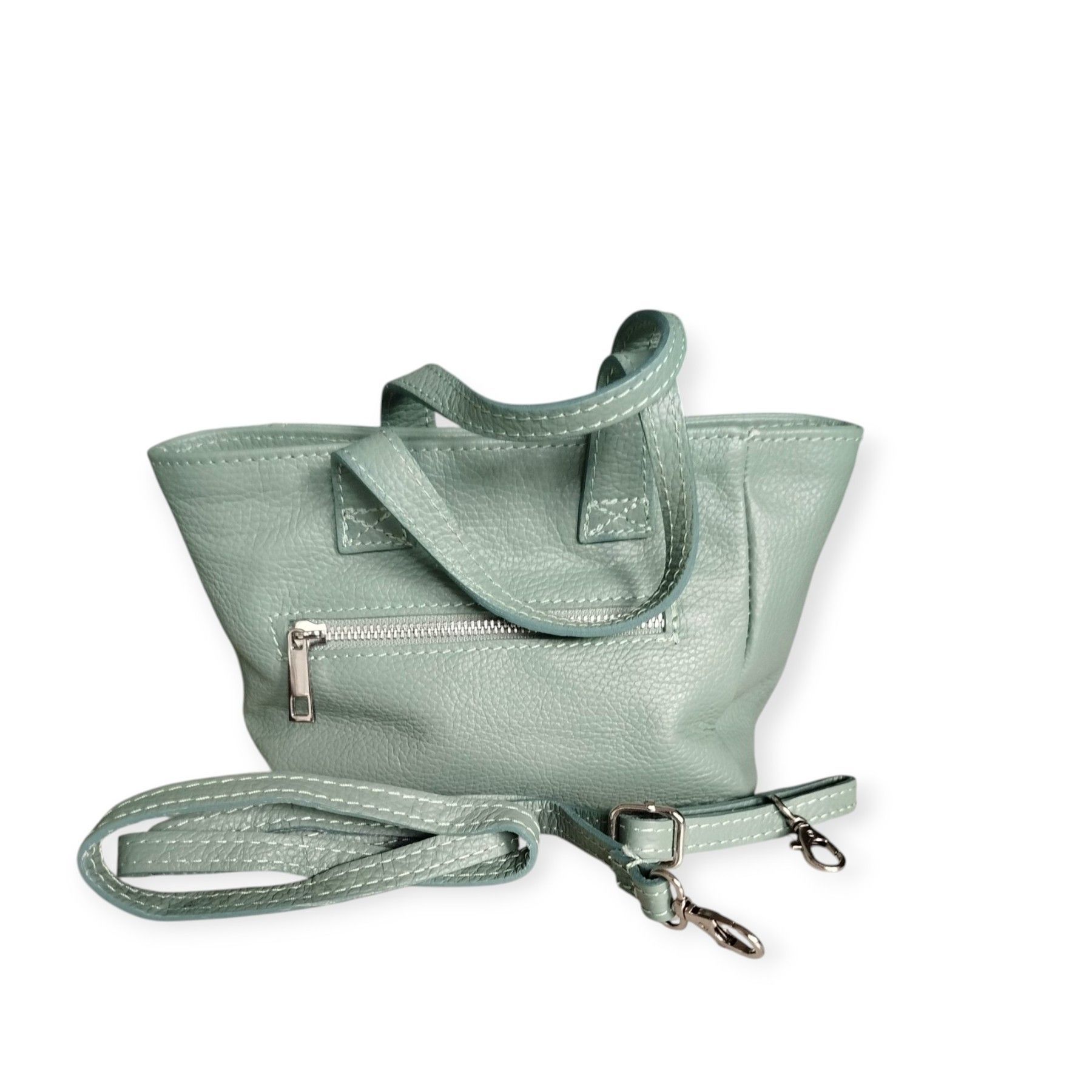 bienestrendshop.com Details: Herkunft: Italien Artikelnummer: TA1001MT Farben: Mint Brombeer Grau Verfügbar Maße: Durchmesser: 24 cm Höhe: 17 cm Design: Hochwertiges, feingenarbtes Material mit edler Struktur Goldfarbene Reißverschlüsse und Details Abnehmbarer, verstellbarer Schultergurt für flexibl