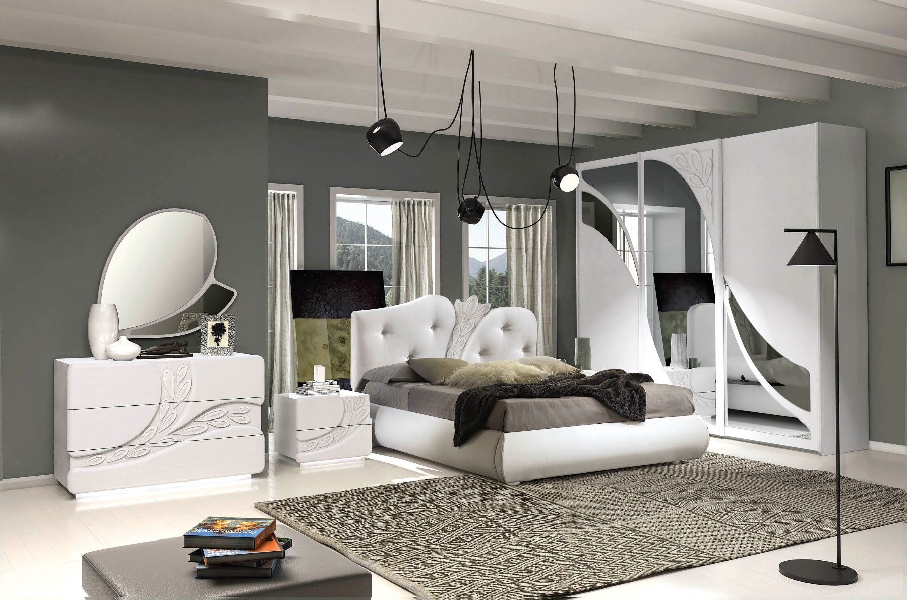 MADE IN ITALY - Aus dem Italienischen Schlafzimmer-Set Iris 1x Bett Liegefläche 160x200 cm B H L: 200x126x220 cm Material: Furnierholz Polsterung aus Kunstleder Die Ware wird zerlegt geliefert und muss montiert werden. Ohne Dekor und Textilien Auf Wunsch ist auch ein individuelles Angebot erhältlich