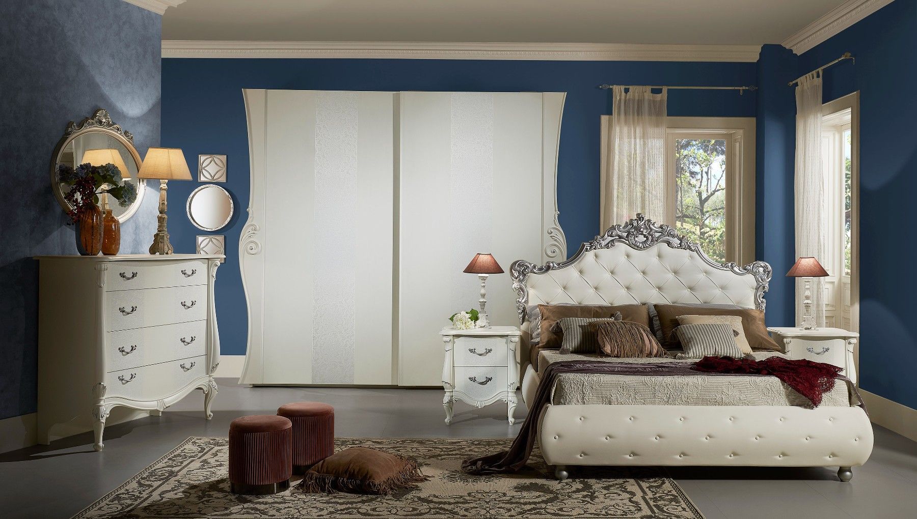 Italienisches Doppelbett Turandot in Weiß / Creme