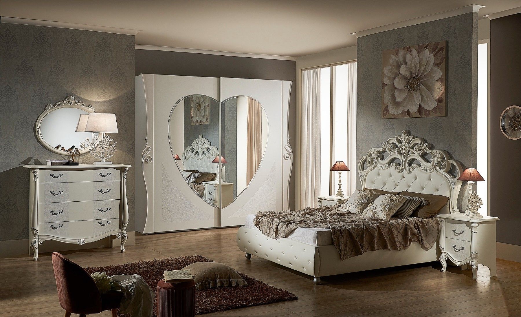 Italienisches Schlafzimmer Set Angelika in Weiß / Creme