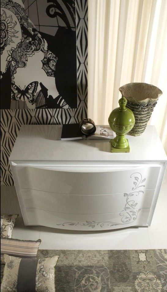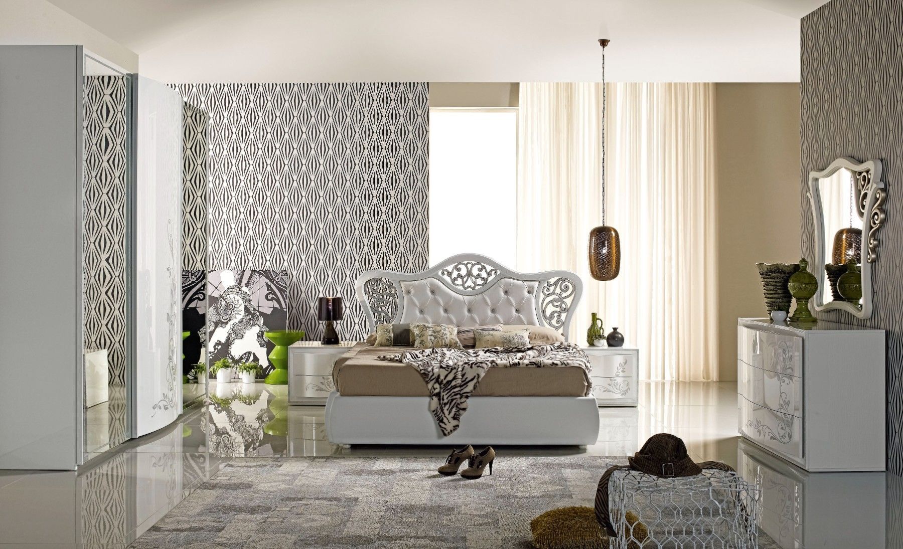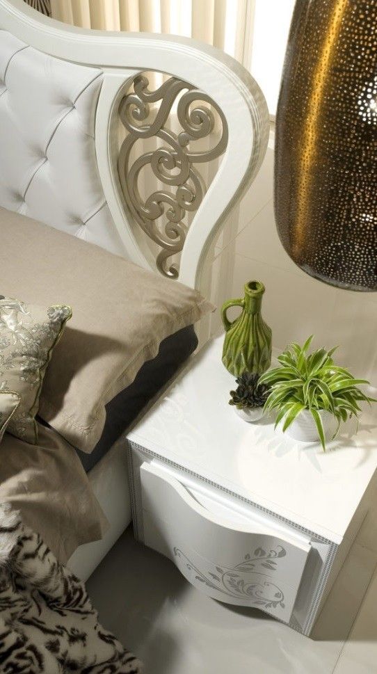 Italienisches Schlafzimmer Set Hilton in Weiß / Silber