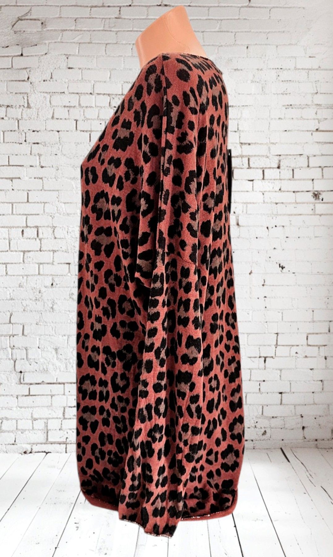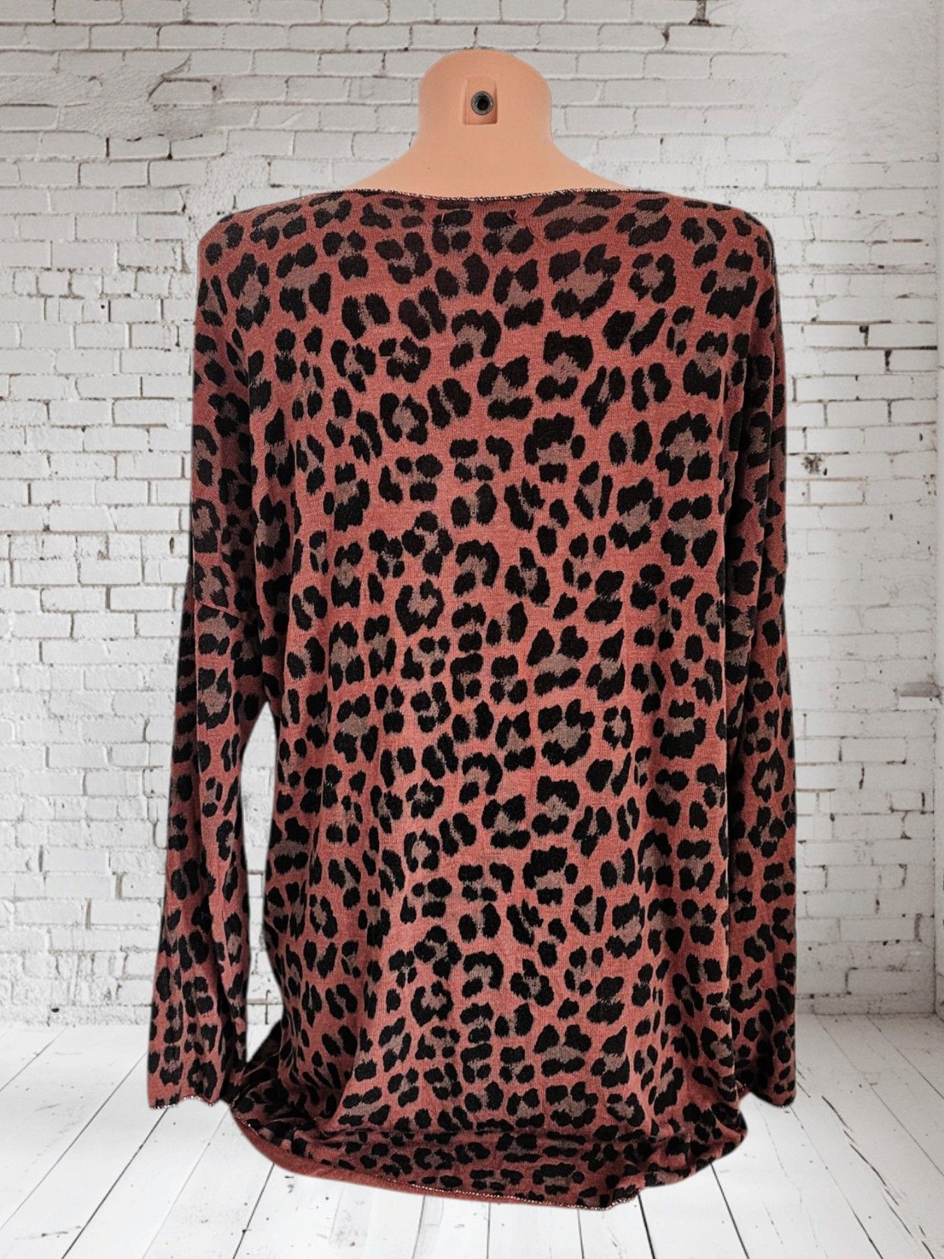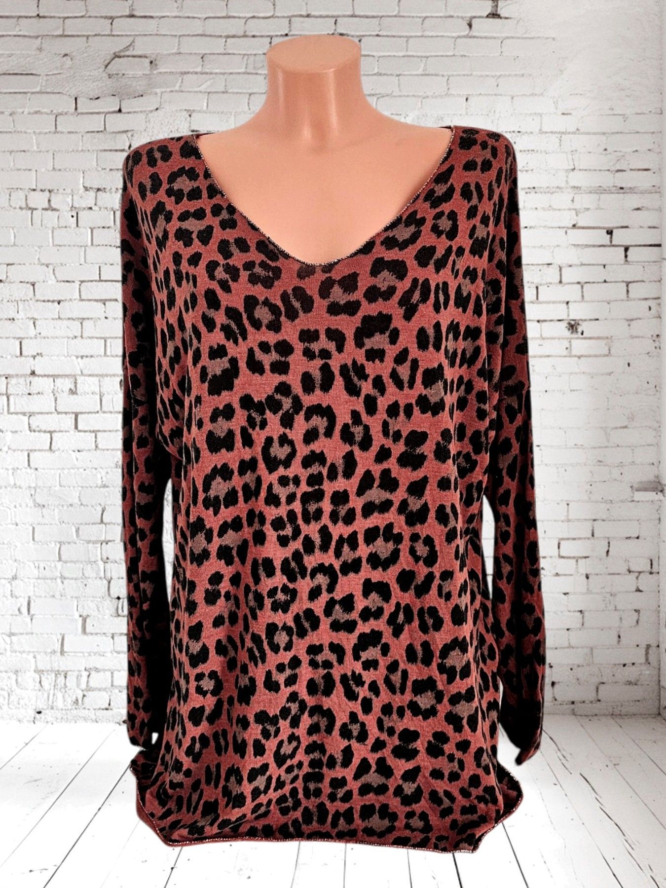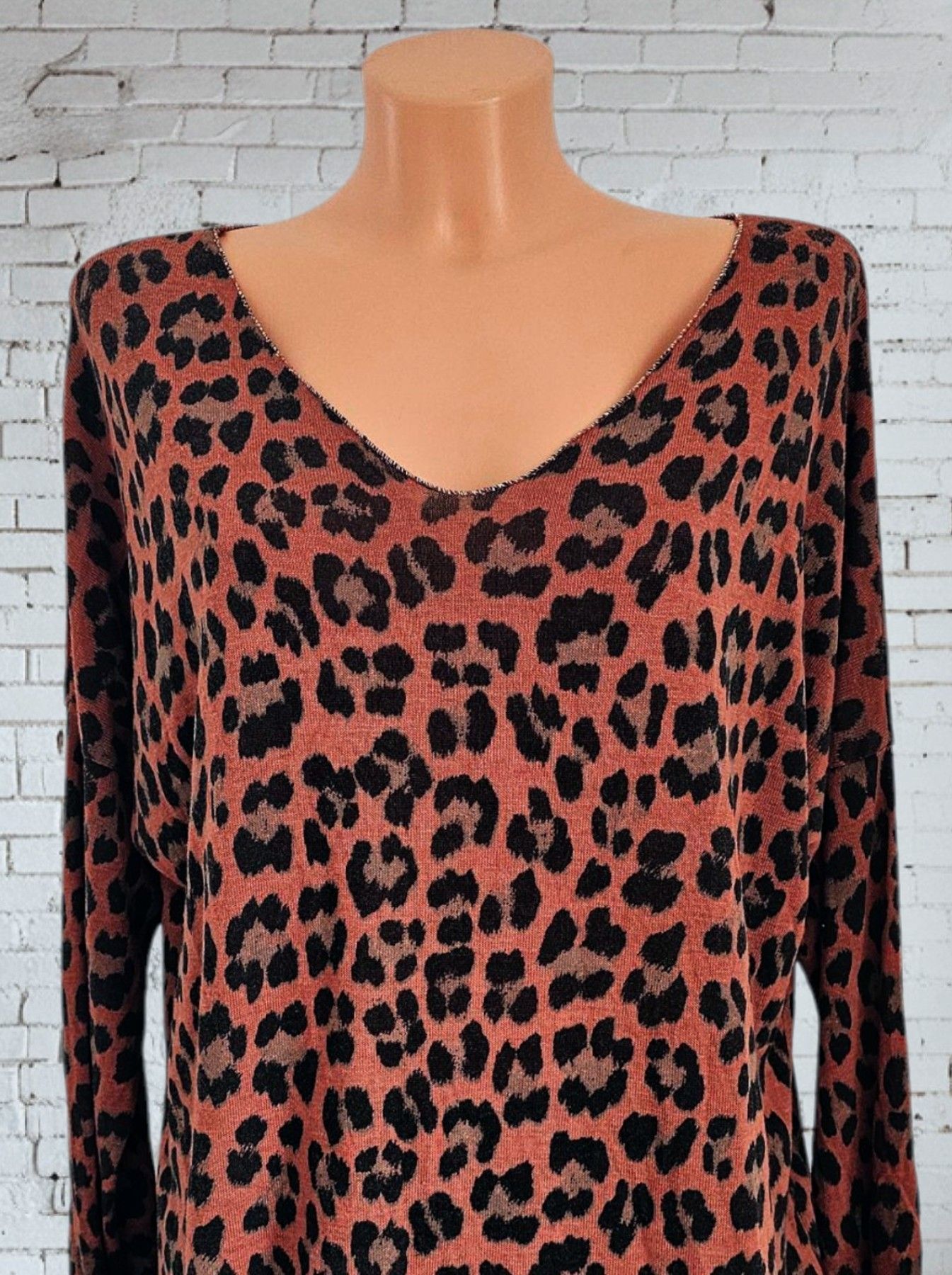 Italy 38 40 42 leichter Pullover Pulli Viskose Lurexkante Animalprint Braun/Schwarz