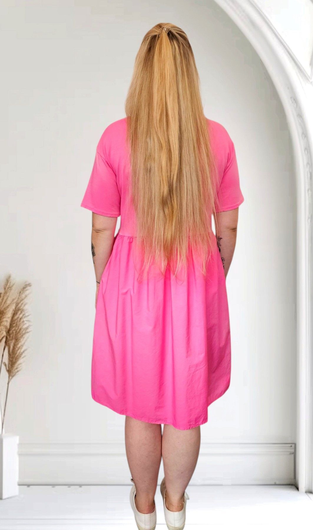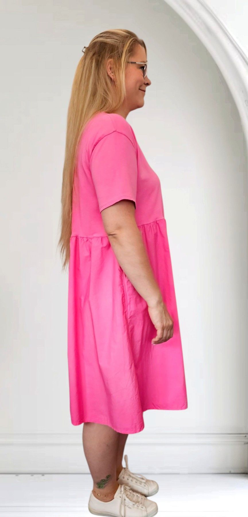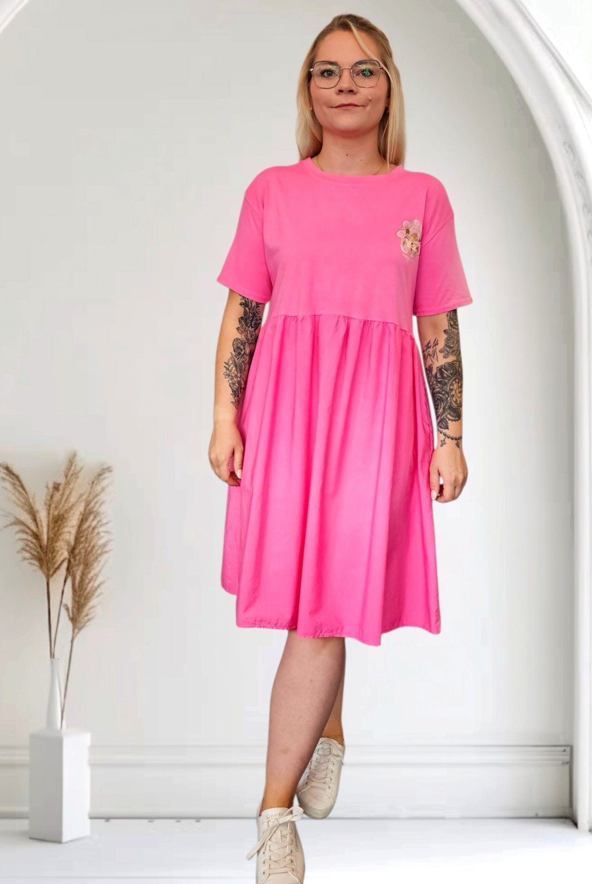 Italy 38 40 42 Sommerkleid Baumwollkleid Kleid weich kurzarm knielang in Pink