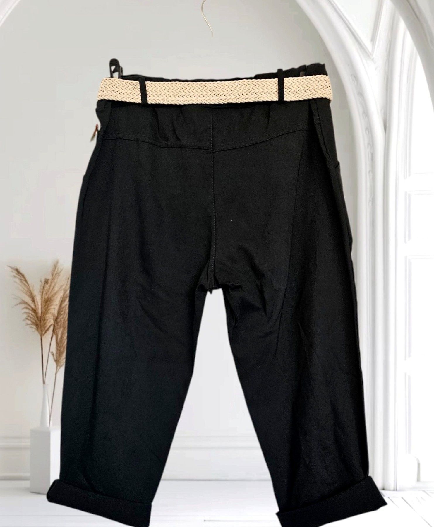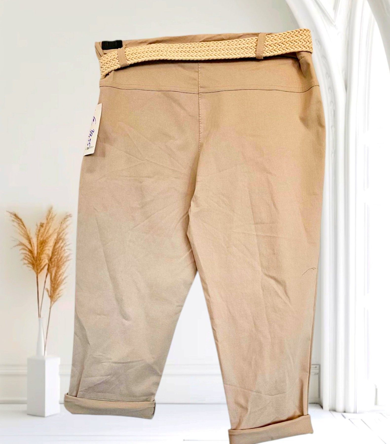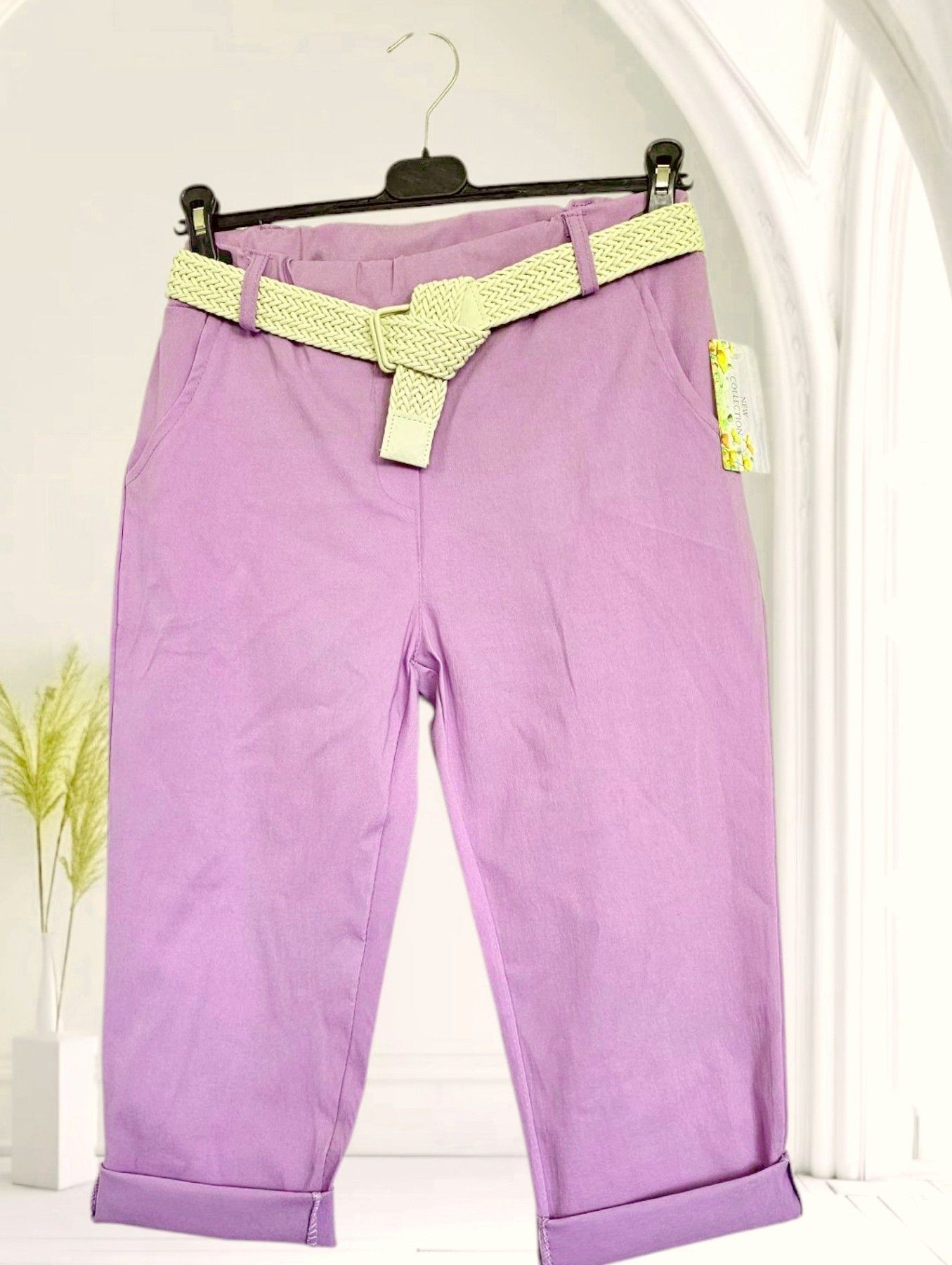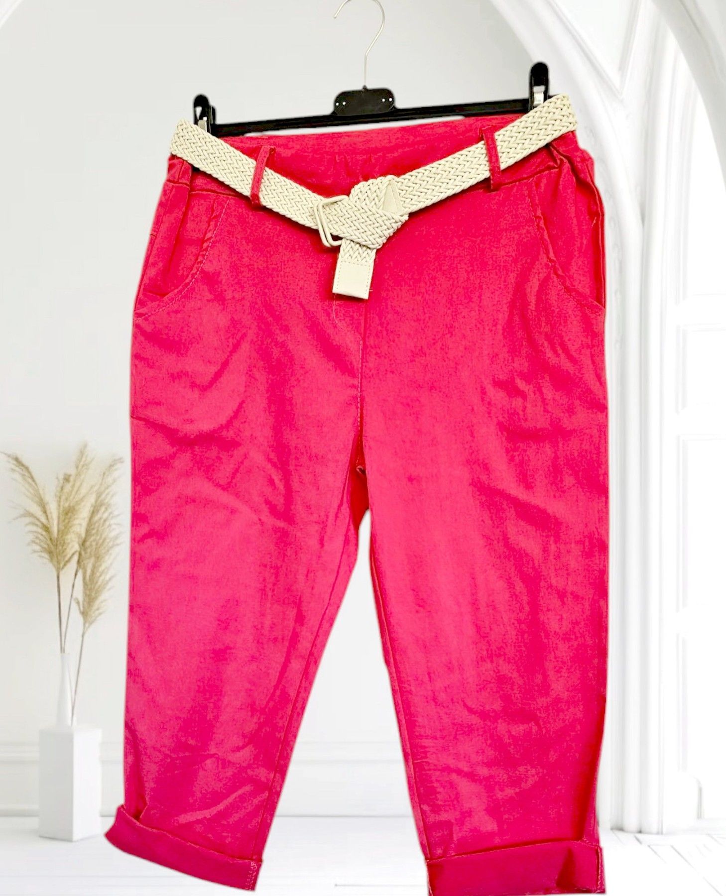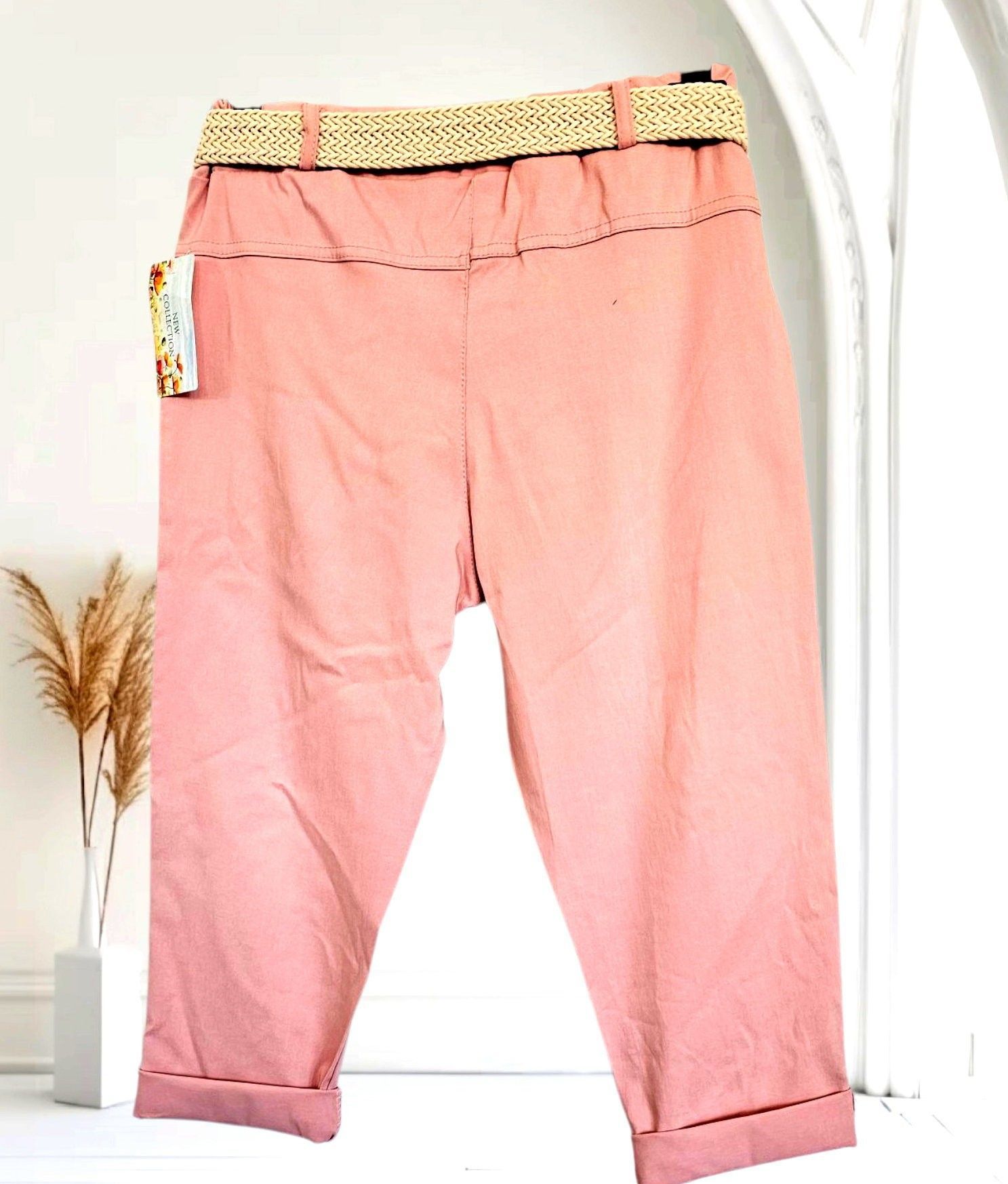 Italy 38-44 Capri Jogpant Hose Stretch Sommerhose mit Gürtel 12 Farben