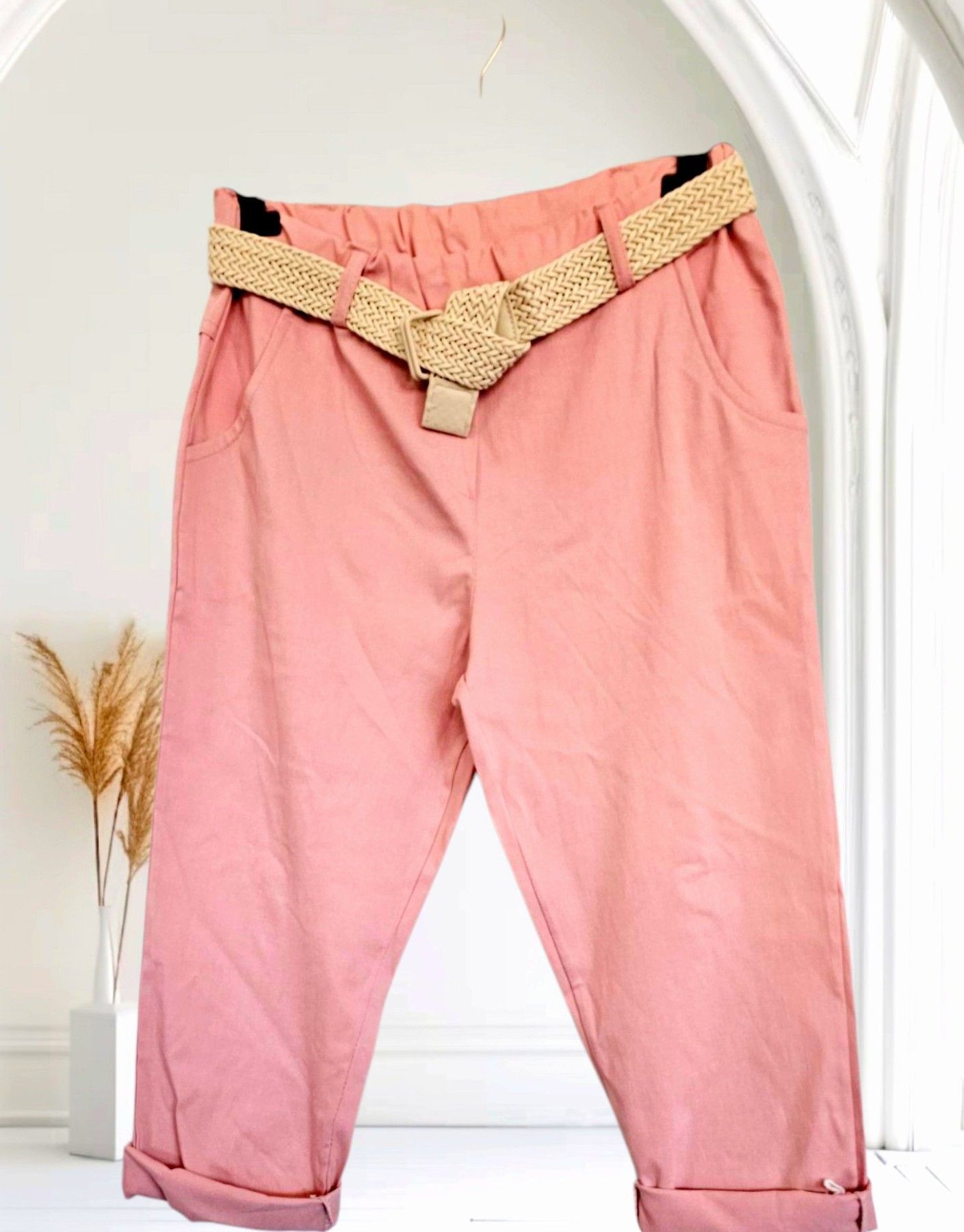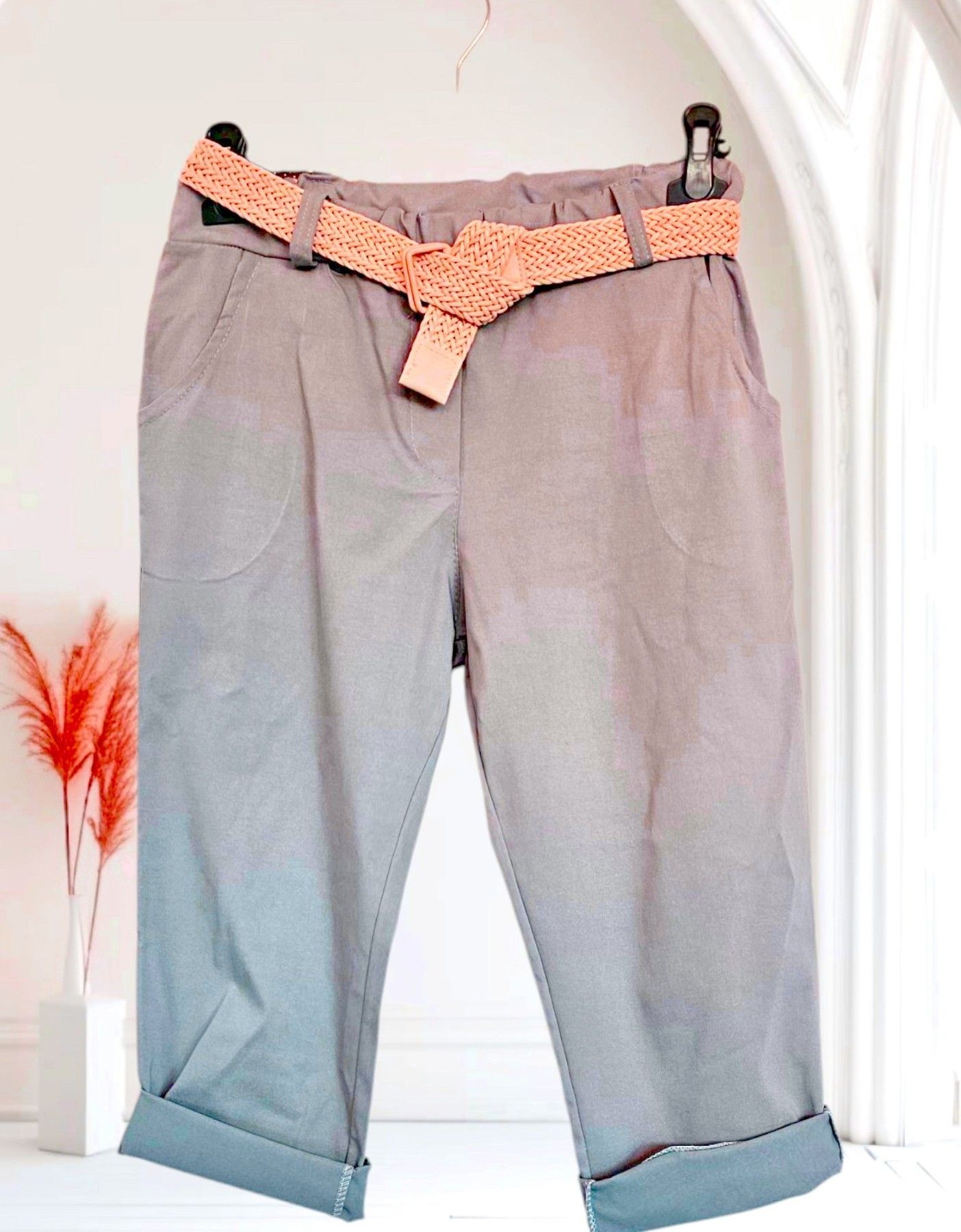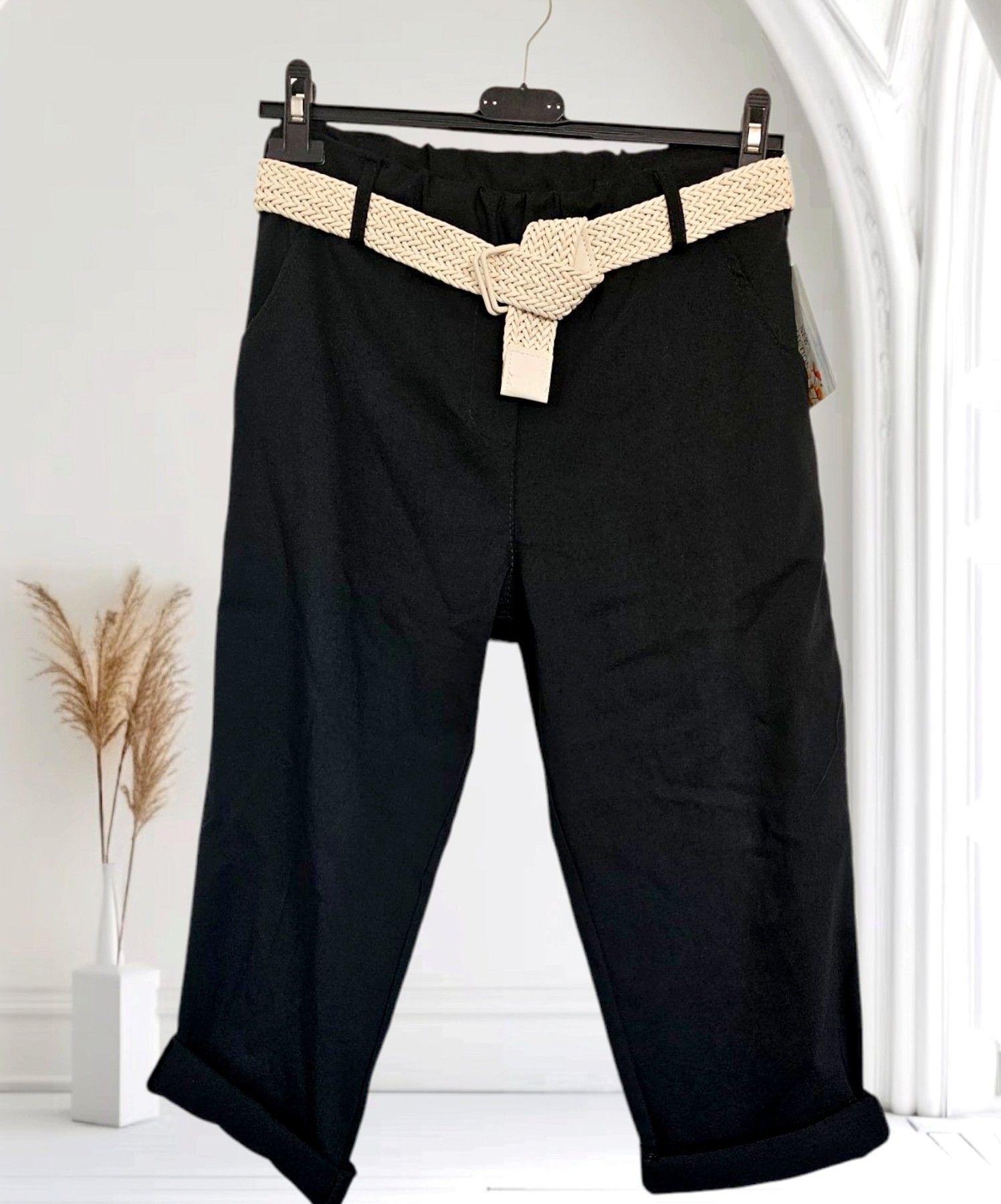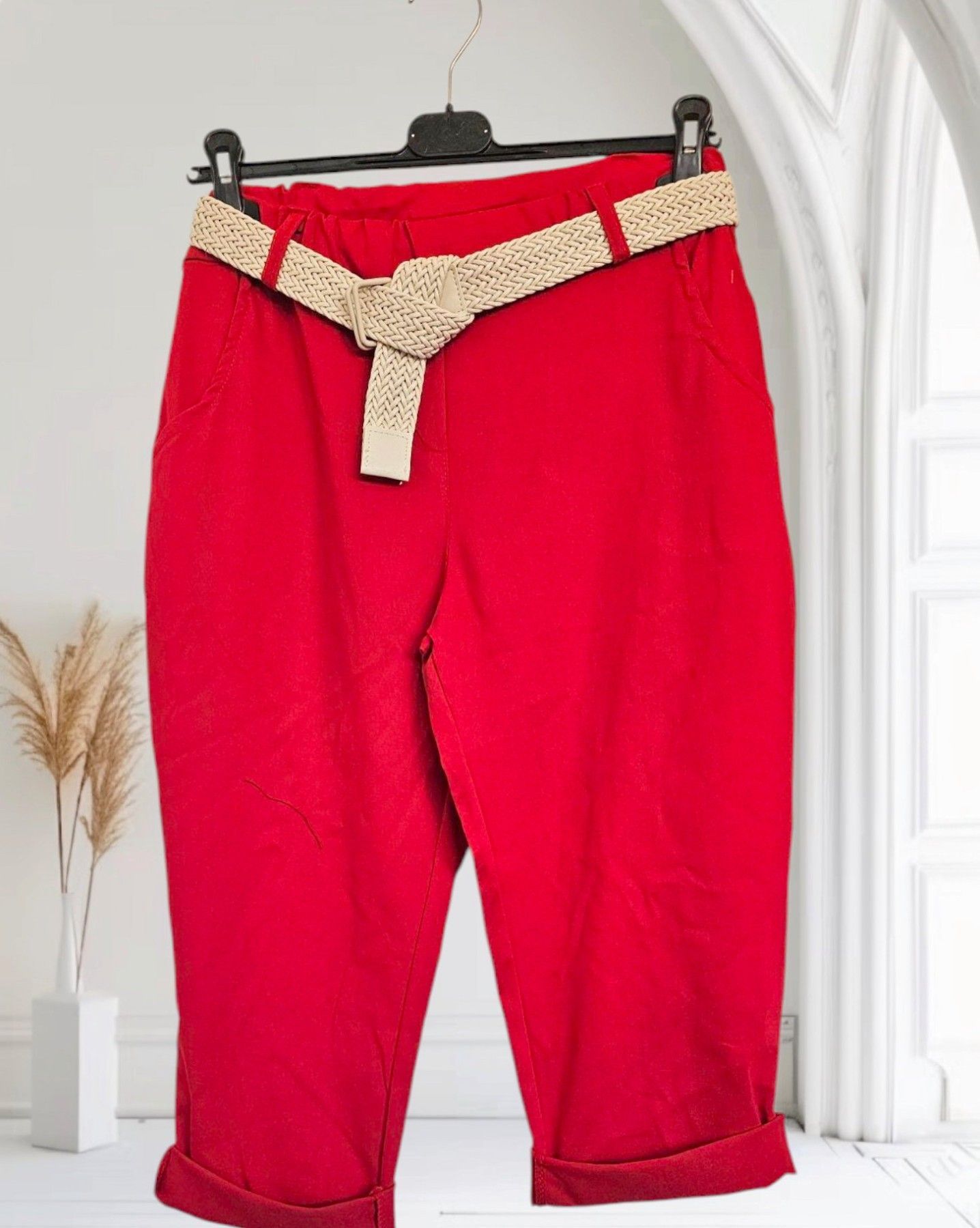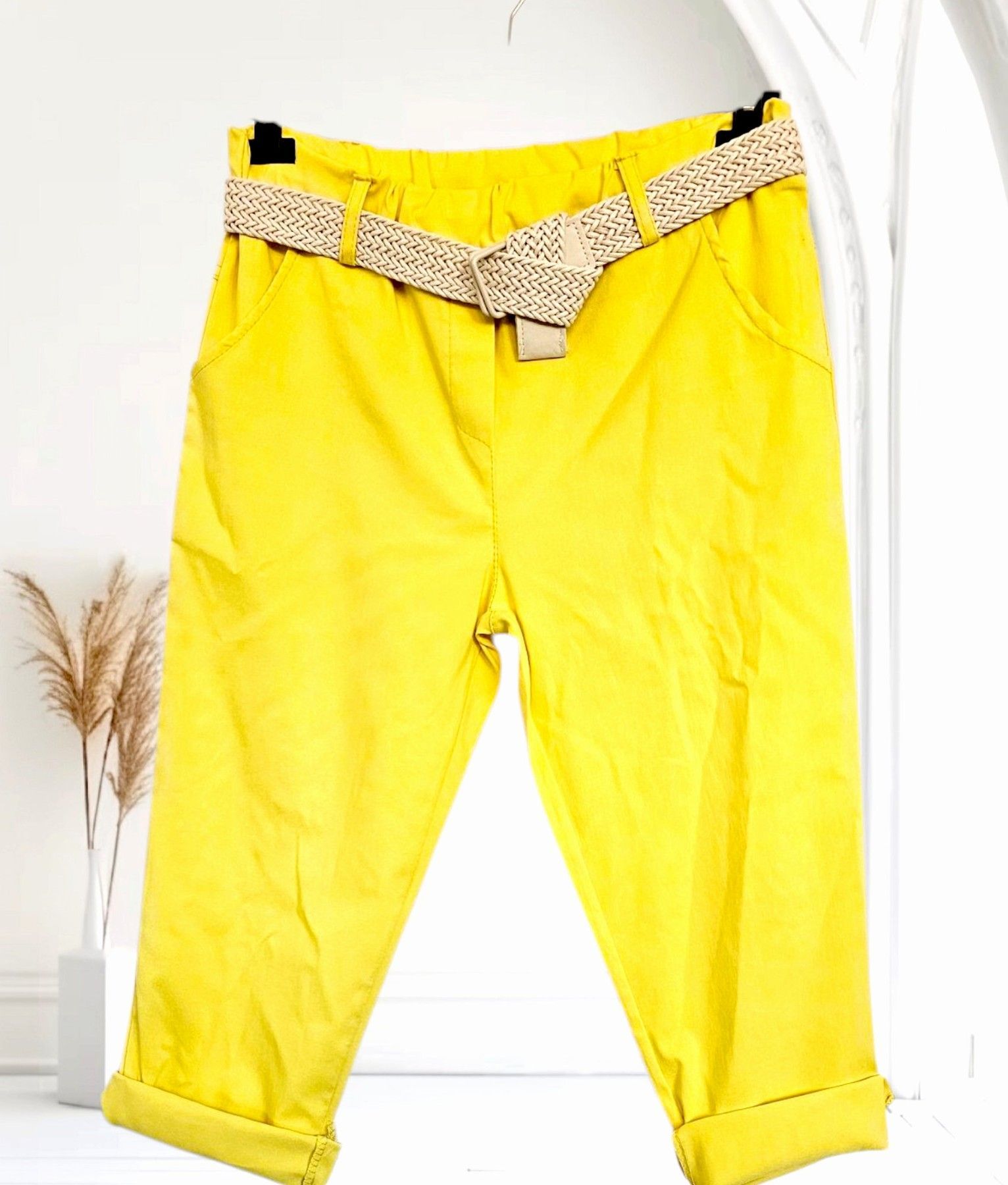 Italy 38-44 Capri Jogpant Hose Stretch Sommerhose mit Gürtel 12 Farben