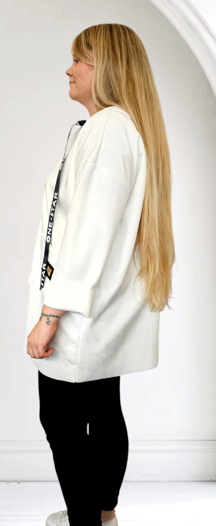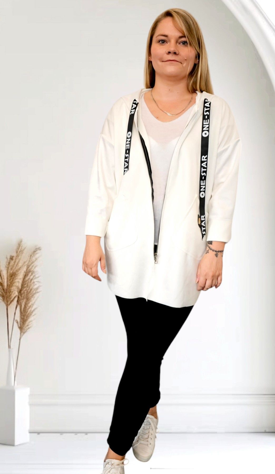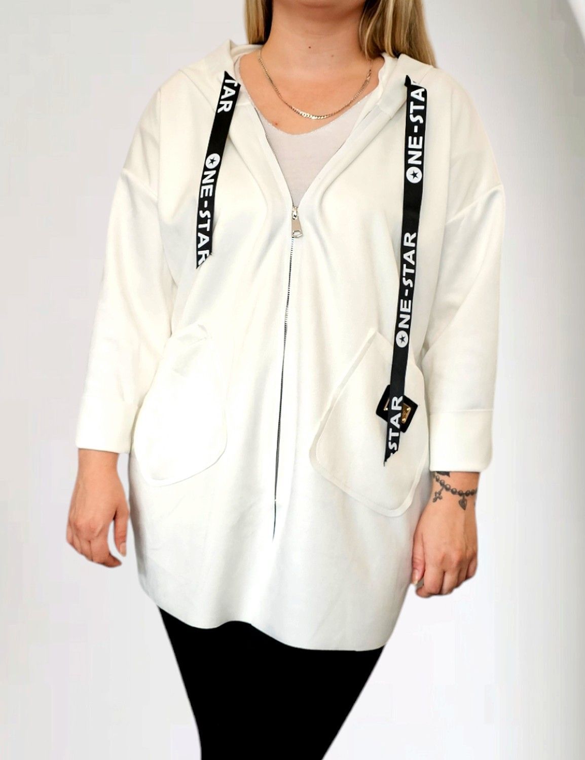 Italy 40 42 44 Übergangsjacke Velours-Optik Kapuze Taschen Zierband Wollweiß