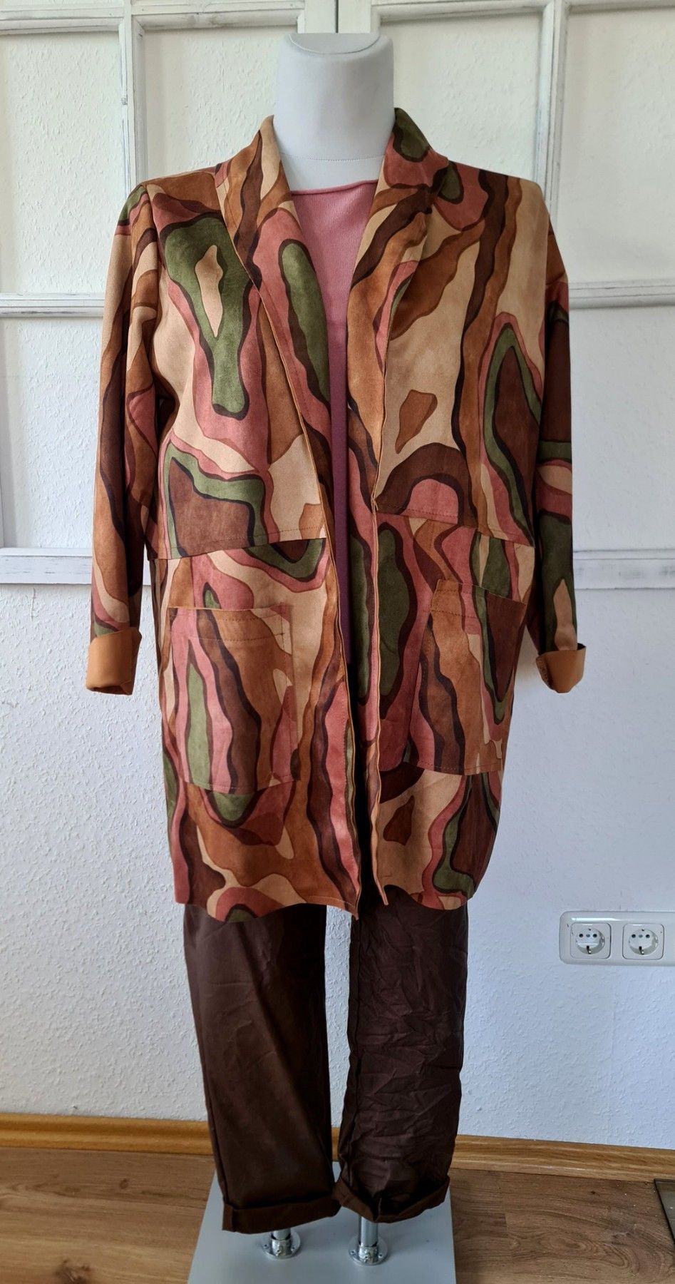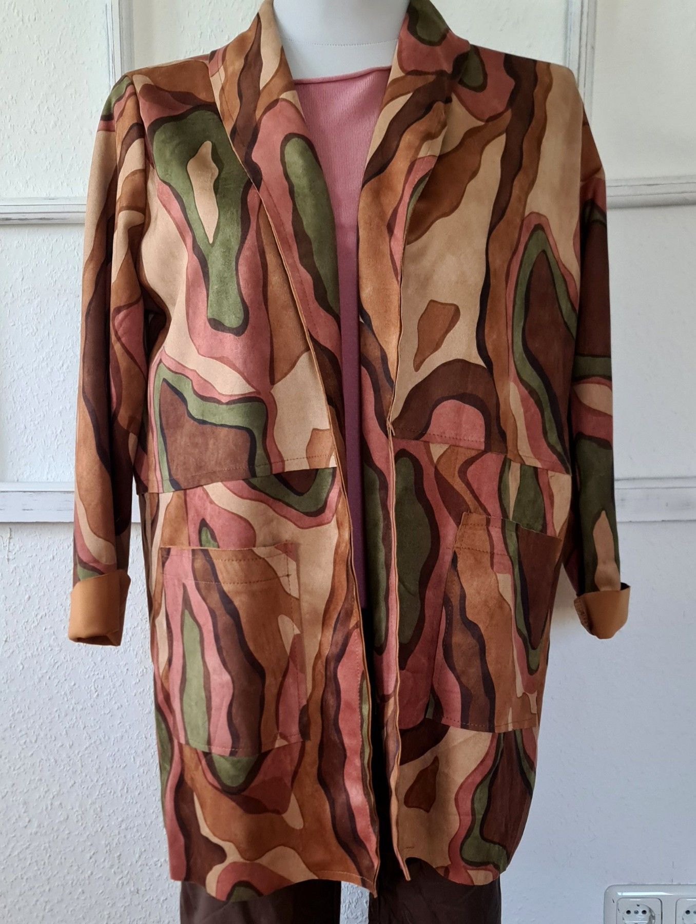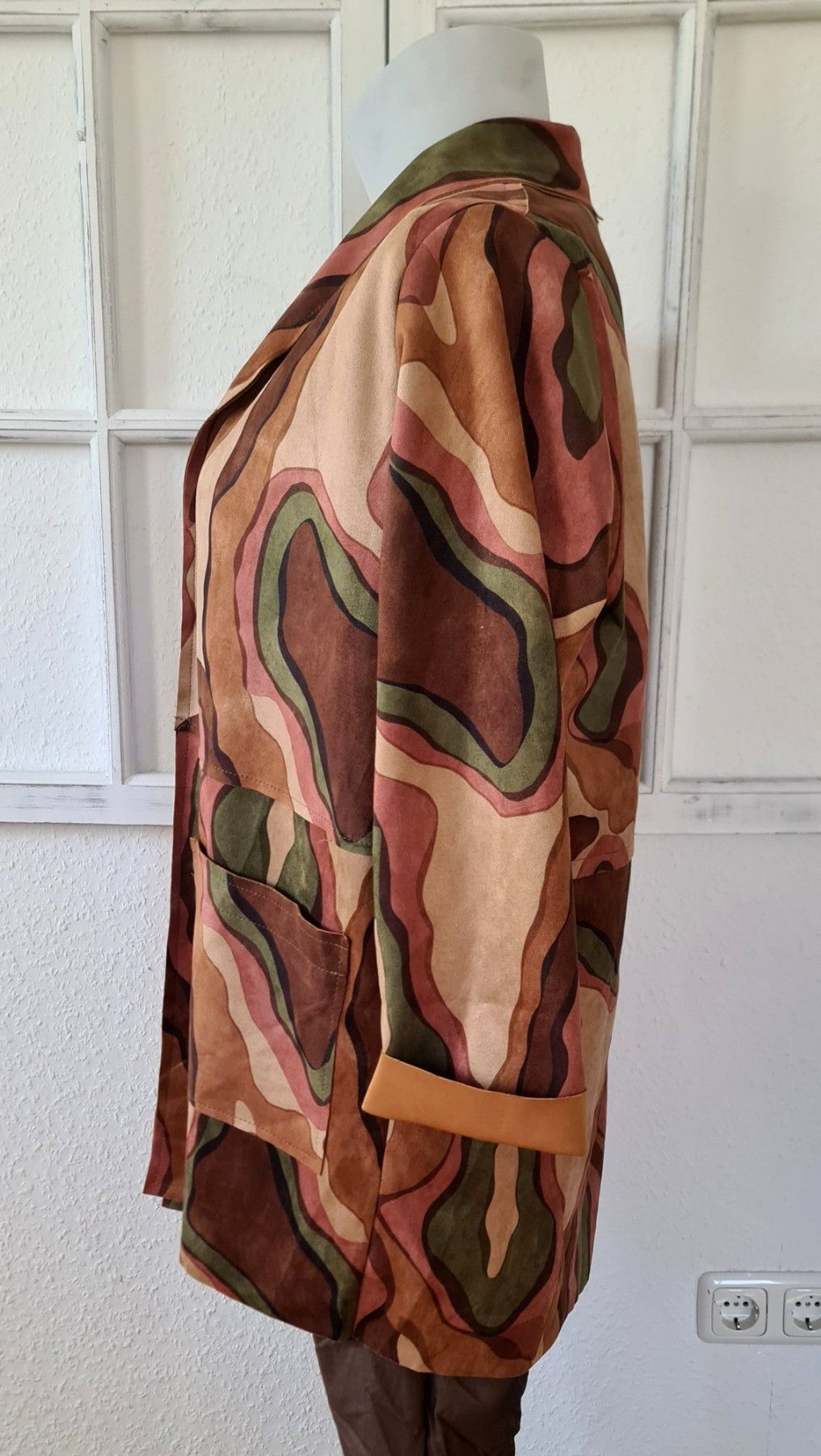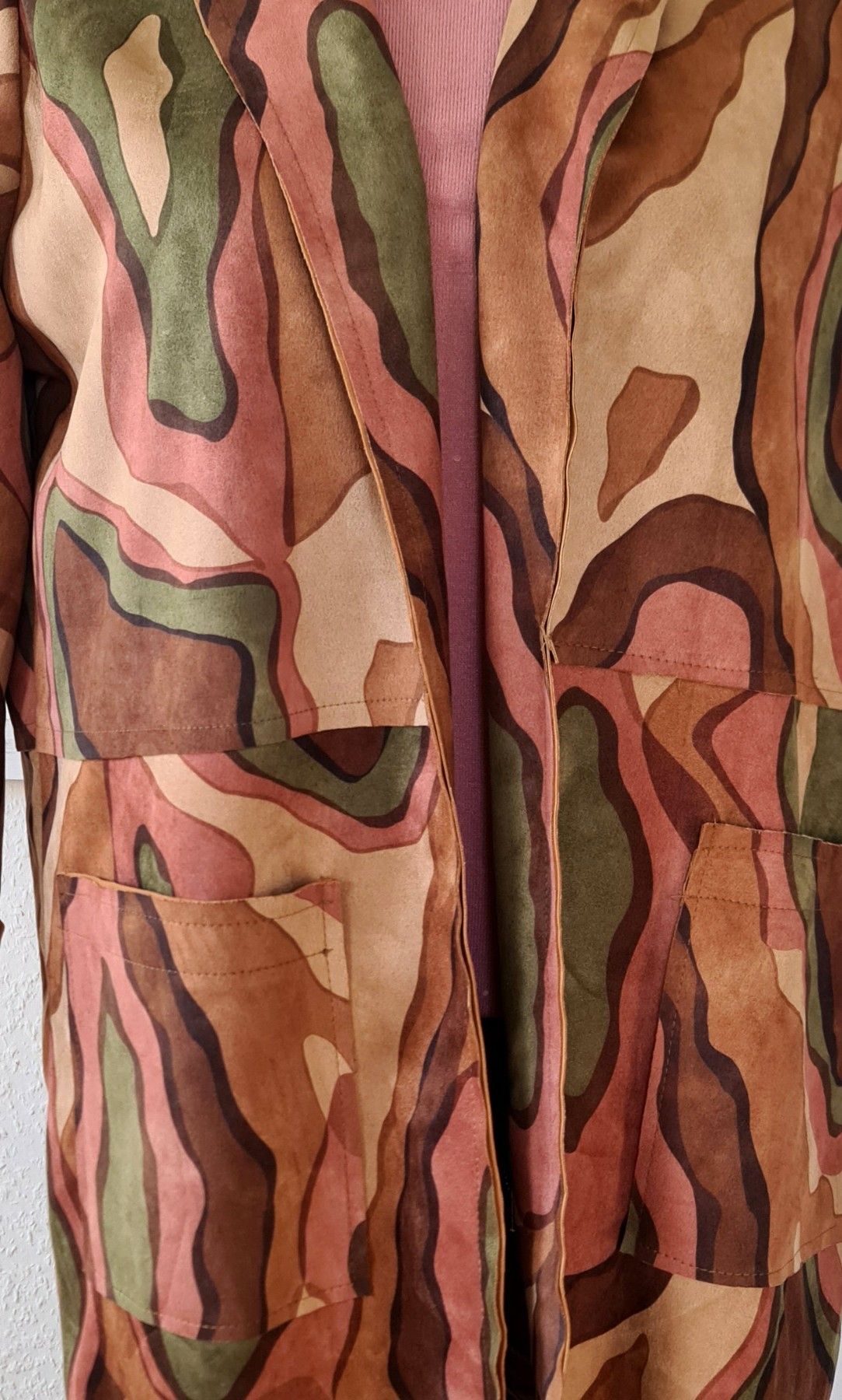 Italy 40/42 Jacke Blazer Velours-Optik Taschen Farbmix Beige Braun Grün Altrosa