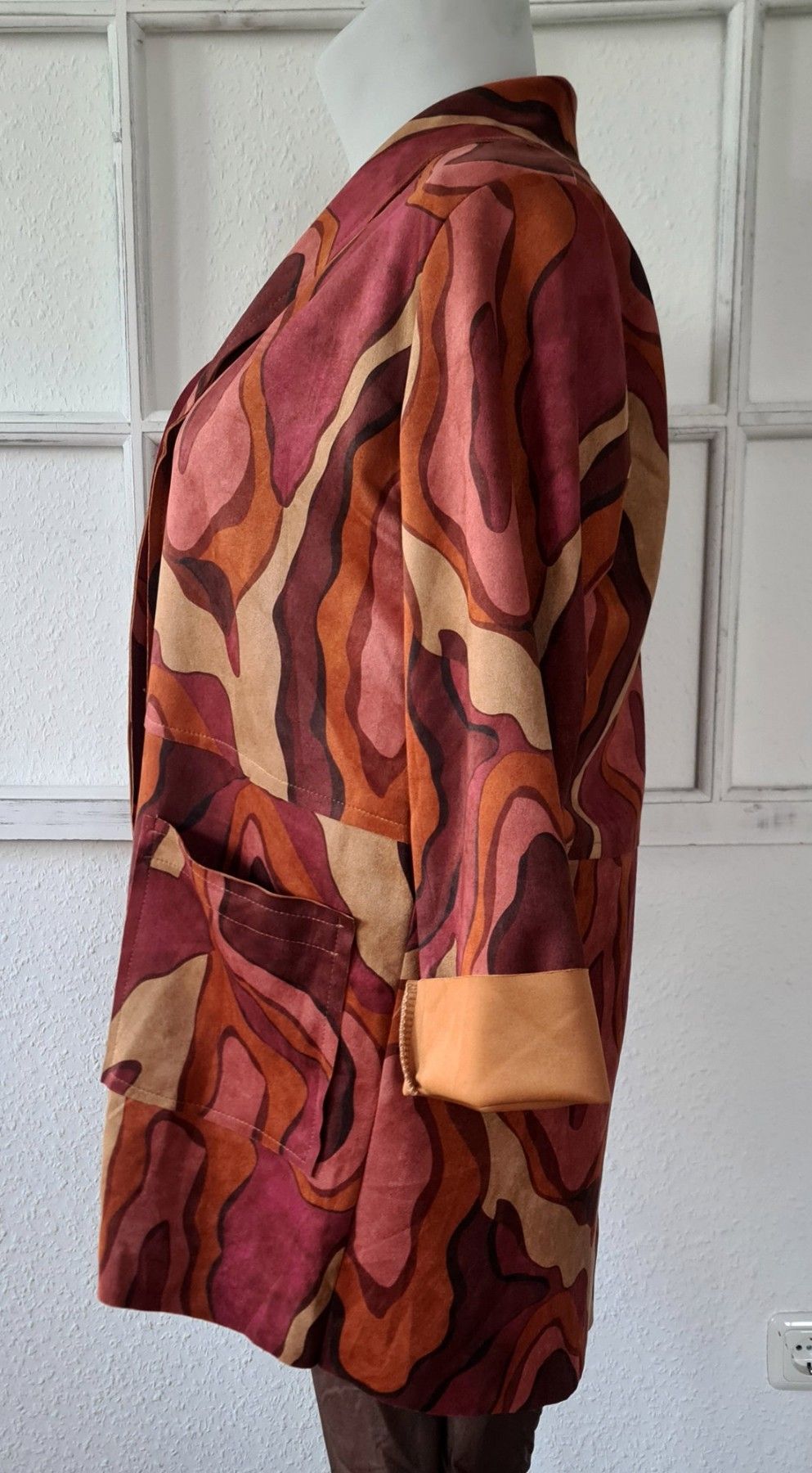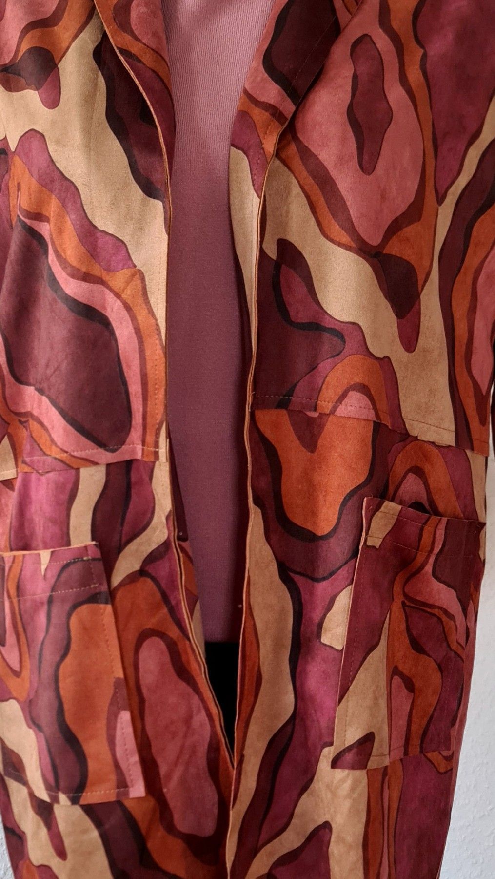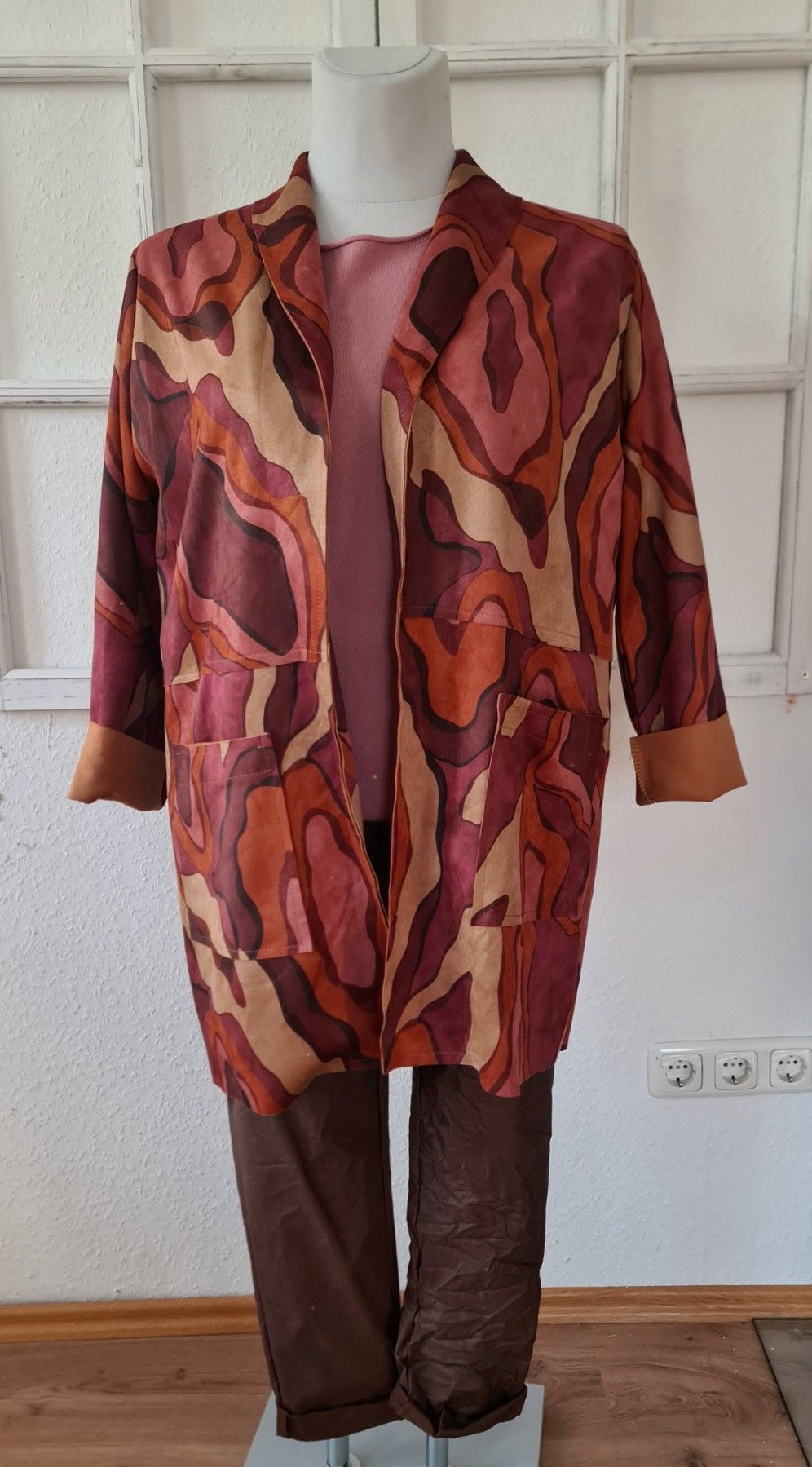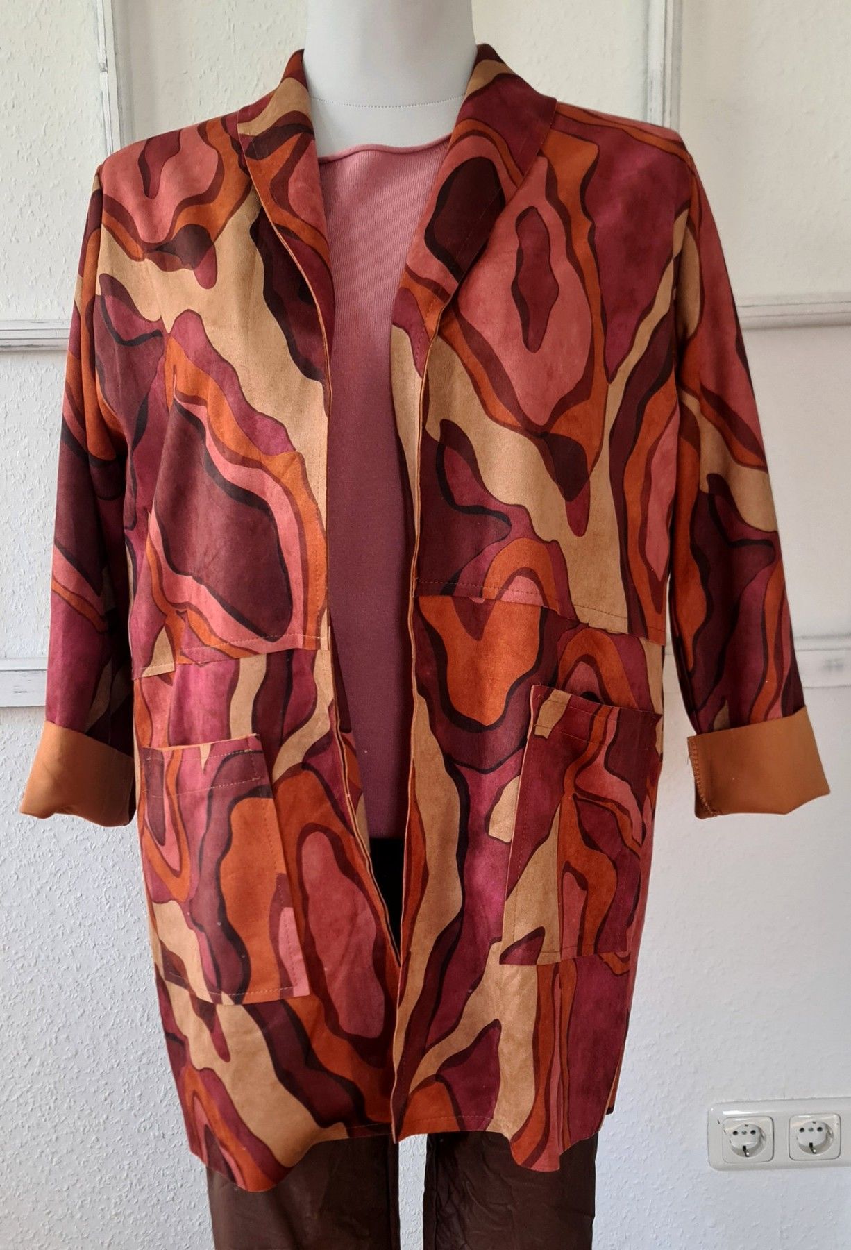 Italy 40/42 Jacke Blazer Velours-Optik Taschen Farbmix Brauntöne Altrosa Beere