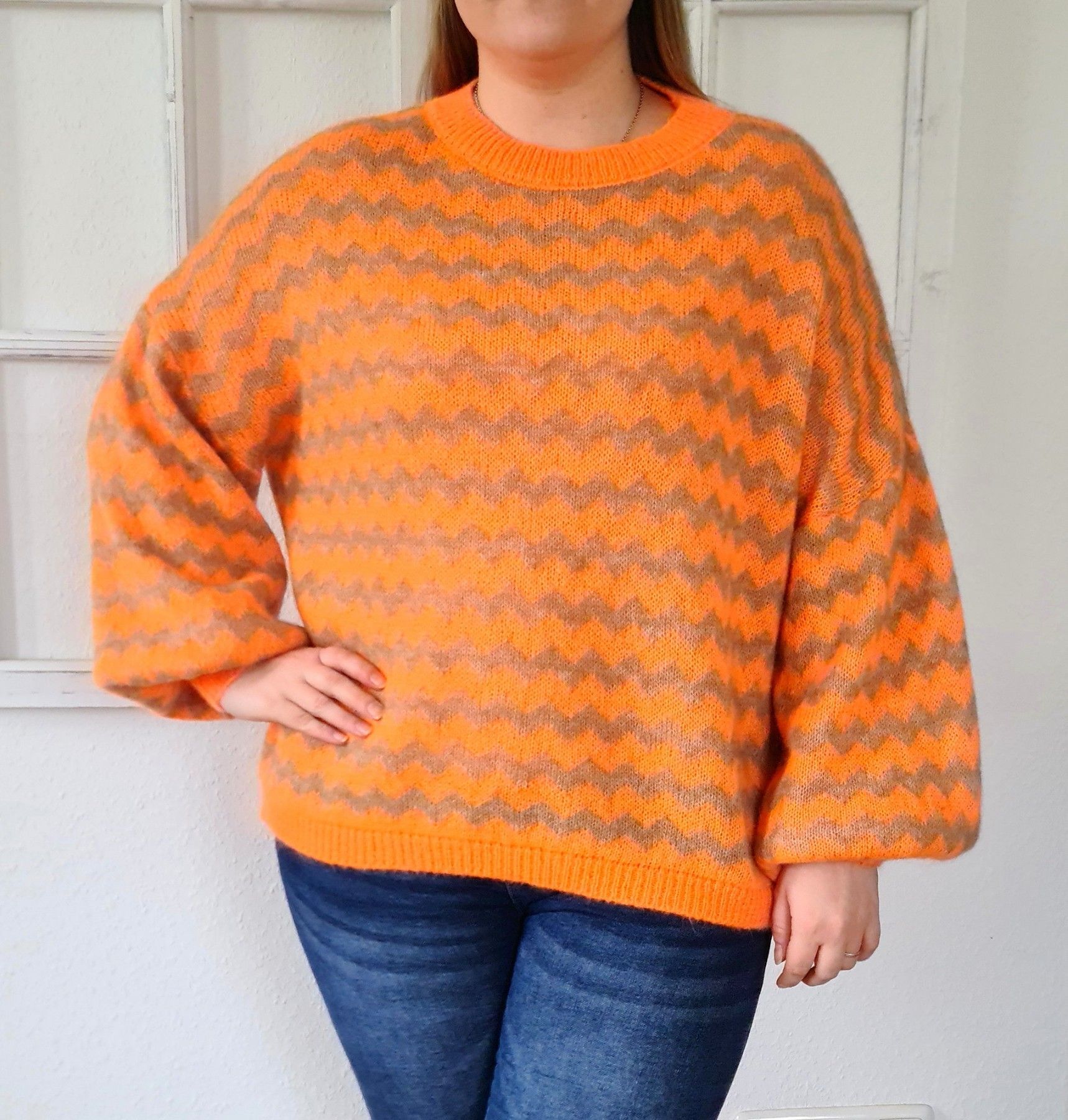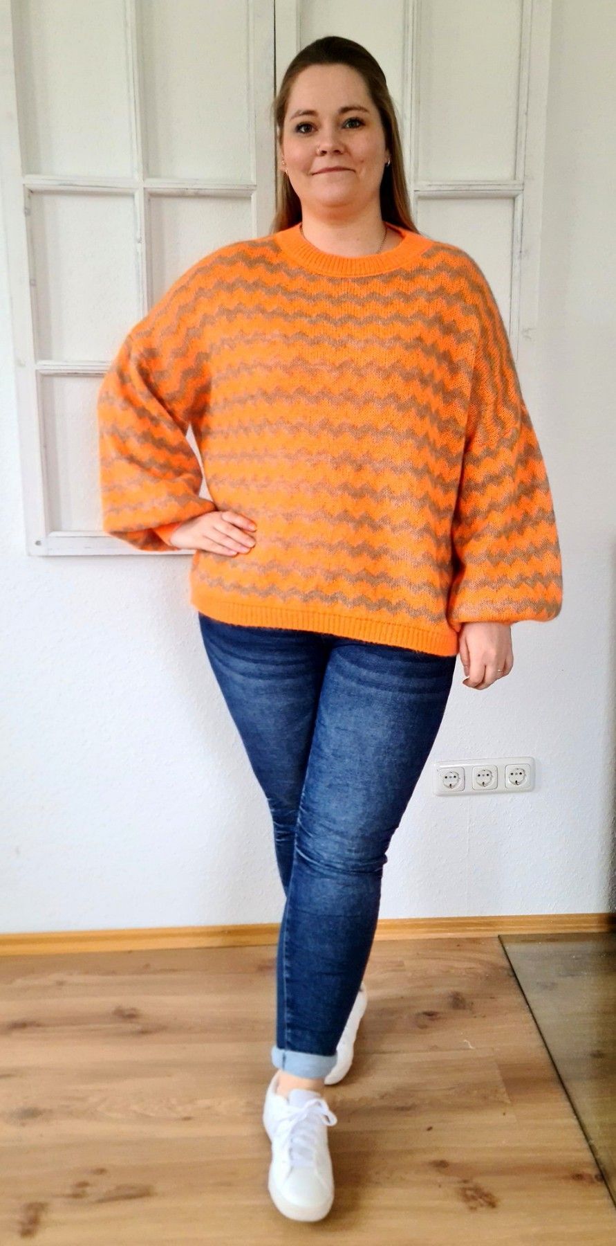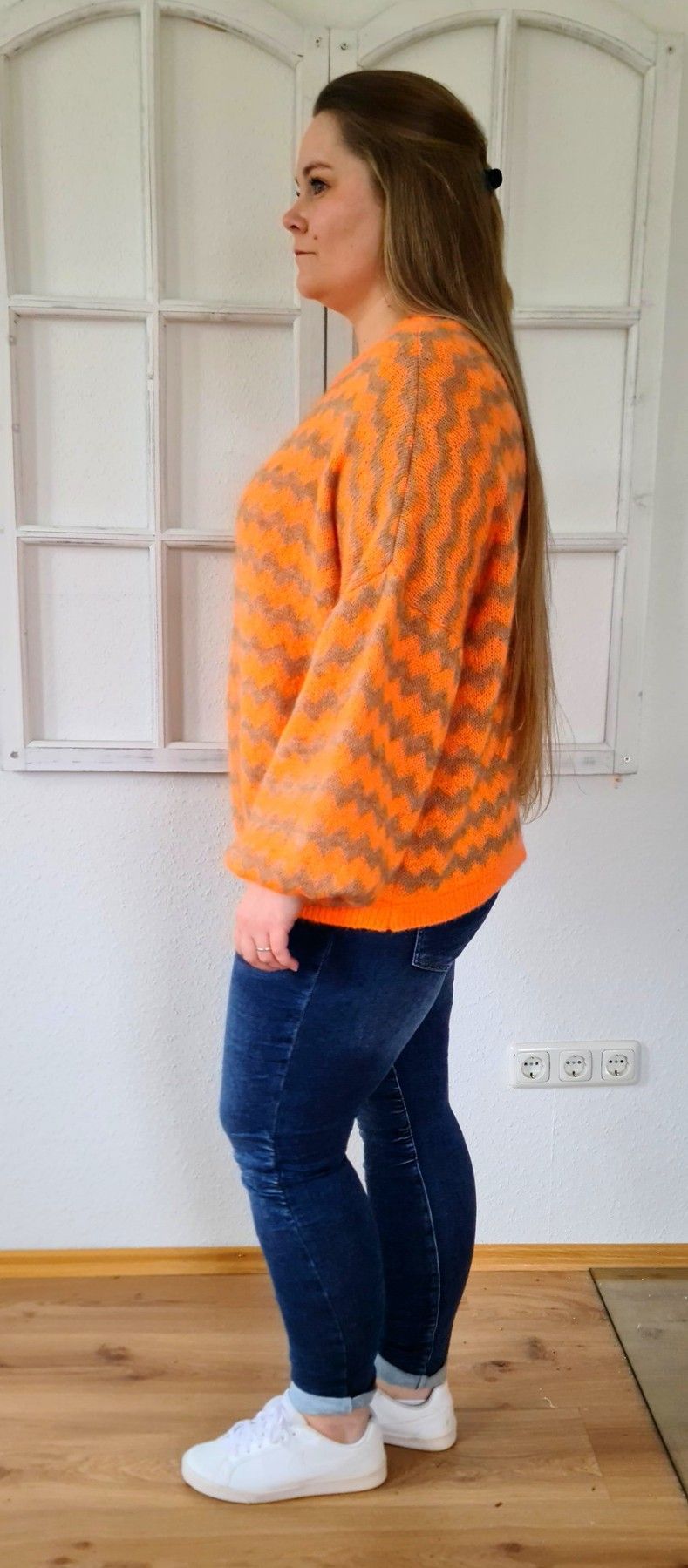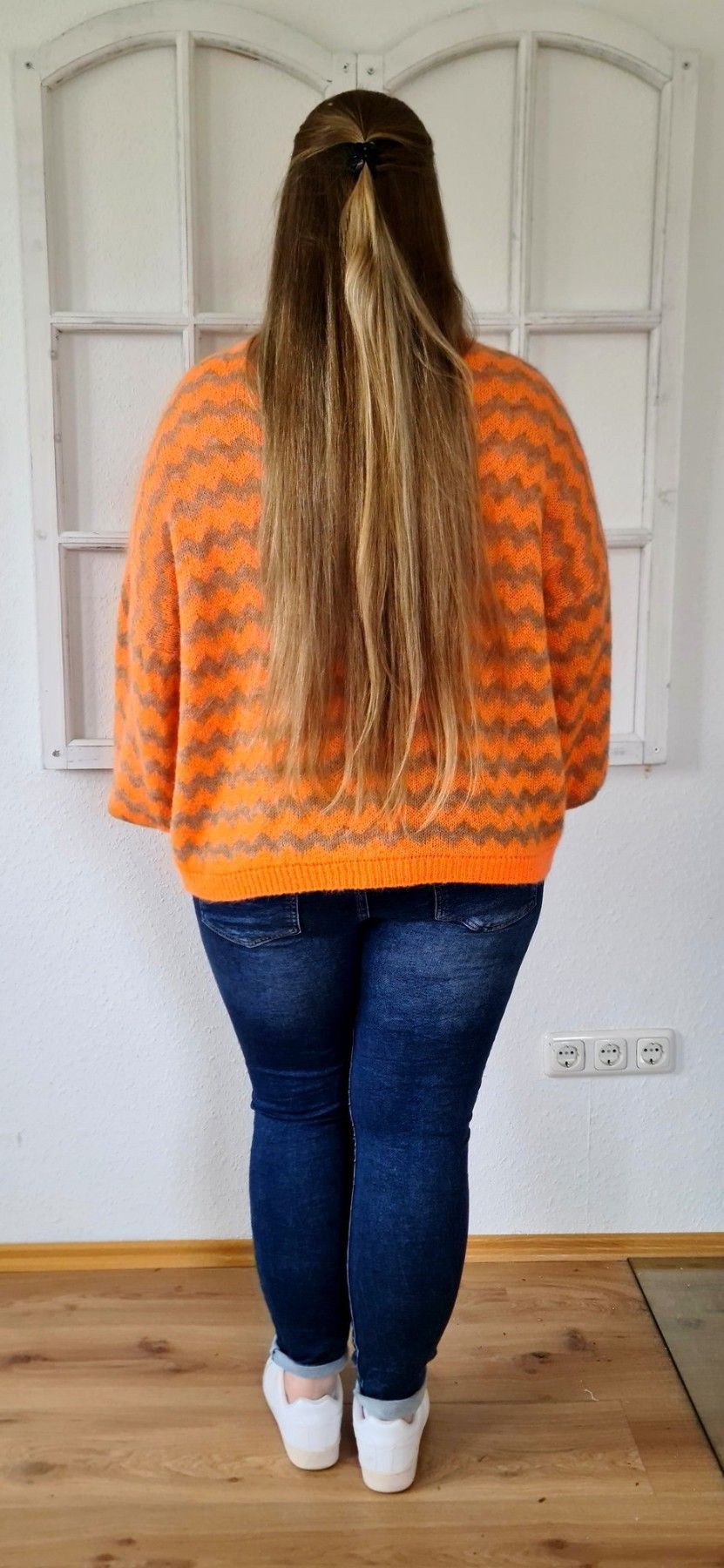 Italy 42 44 46 kuscheliger Pullover Pulli langarm mit Mohair Orange/Grau