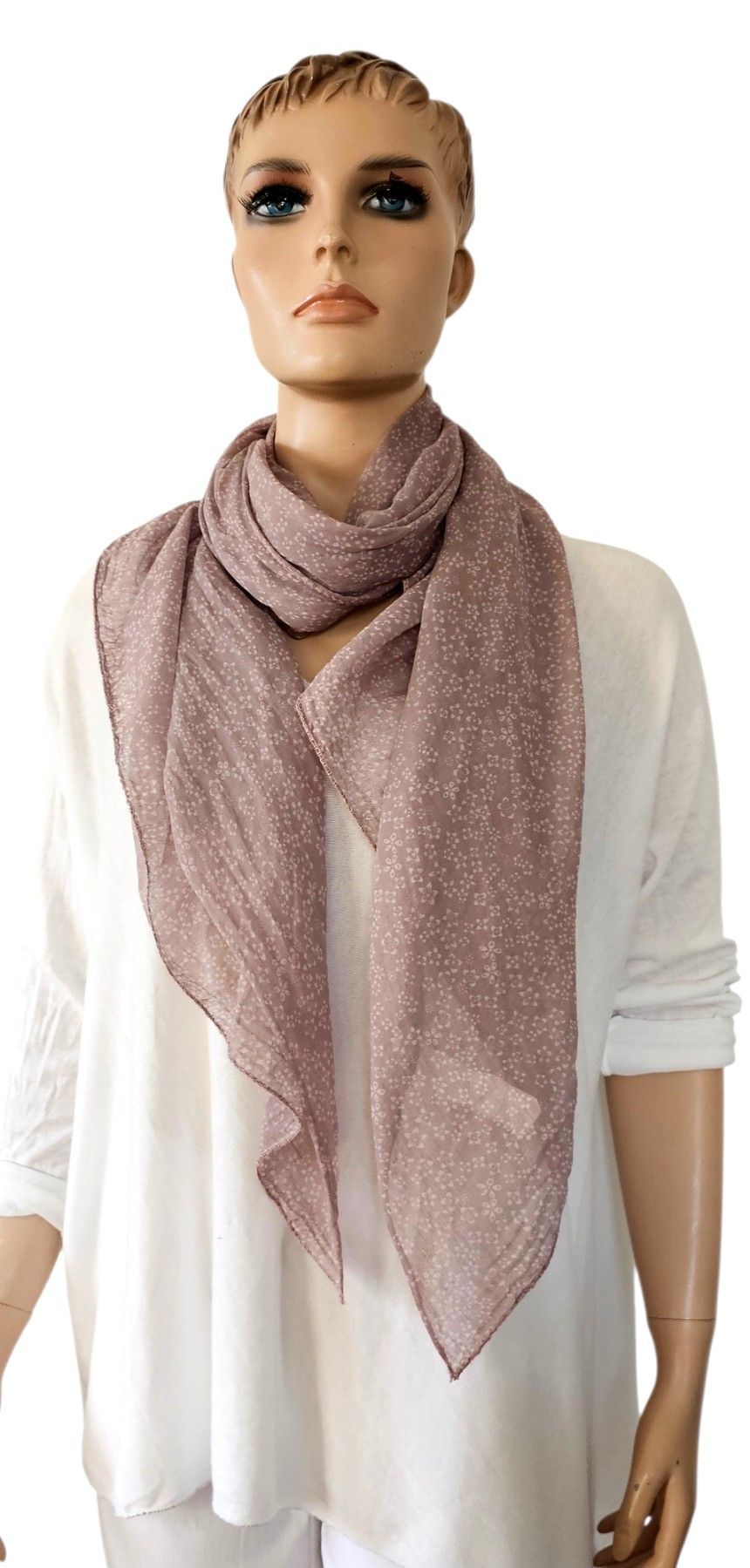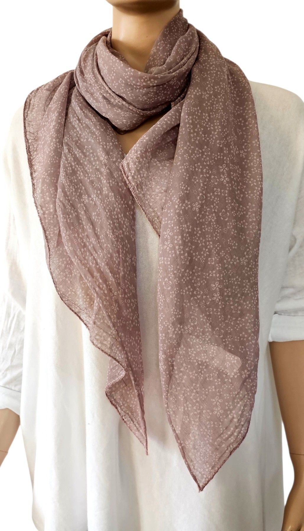 Italy Blogger Schal Halstuch Scarf Seide/Baumw. asymetrisch Blumenprint Altrosa