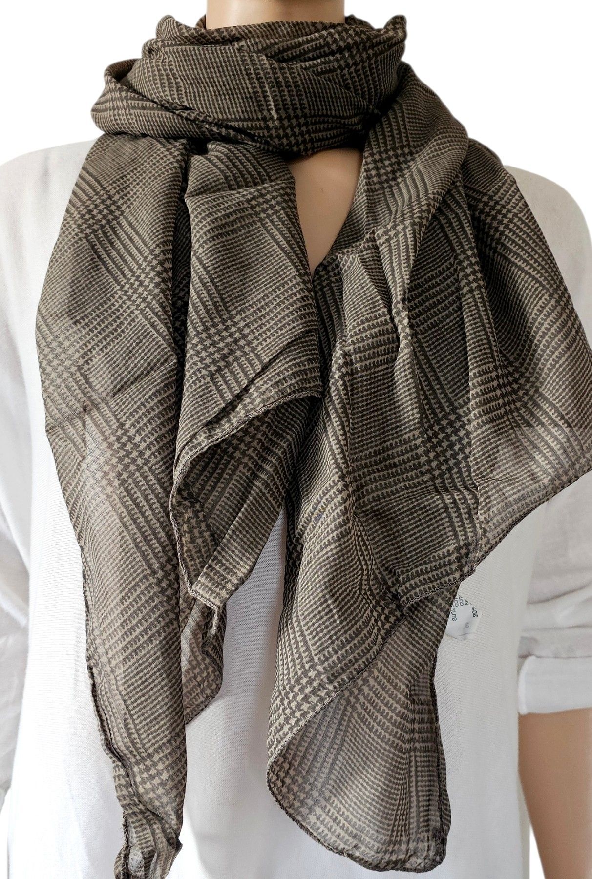 Italy Blogger Schal Halstuch Scarf Seide/Baumw. asymetrisch Karoprint Braun