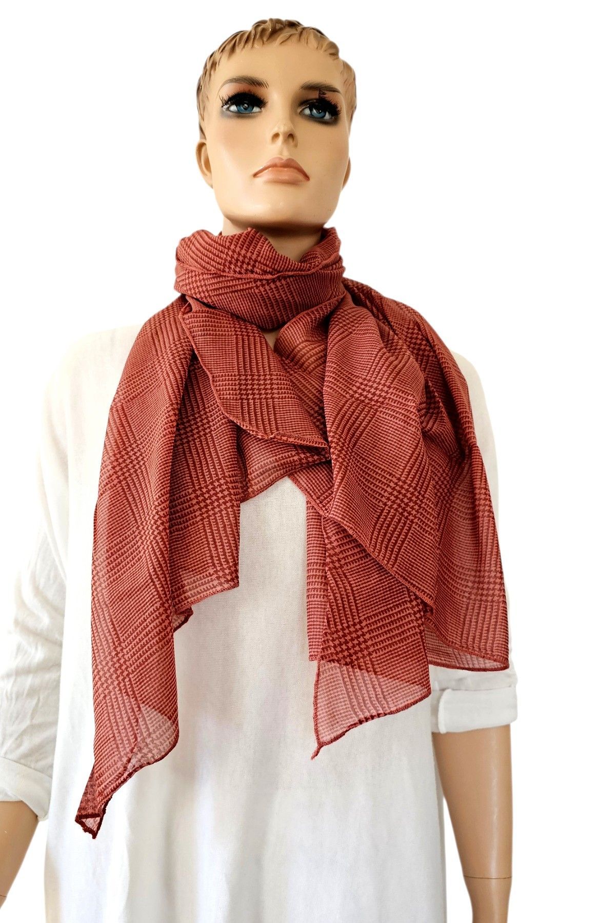 Italy Blogger Schal Halstuch Scarf Seide/Baumw. asymetrisch Karoprint Rotbraun