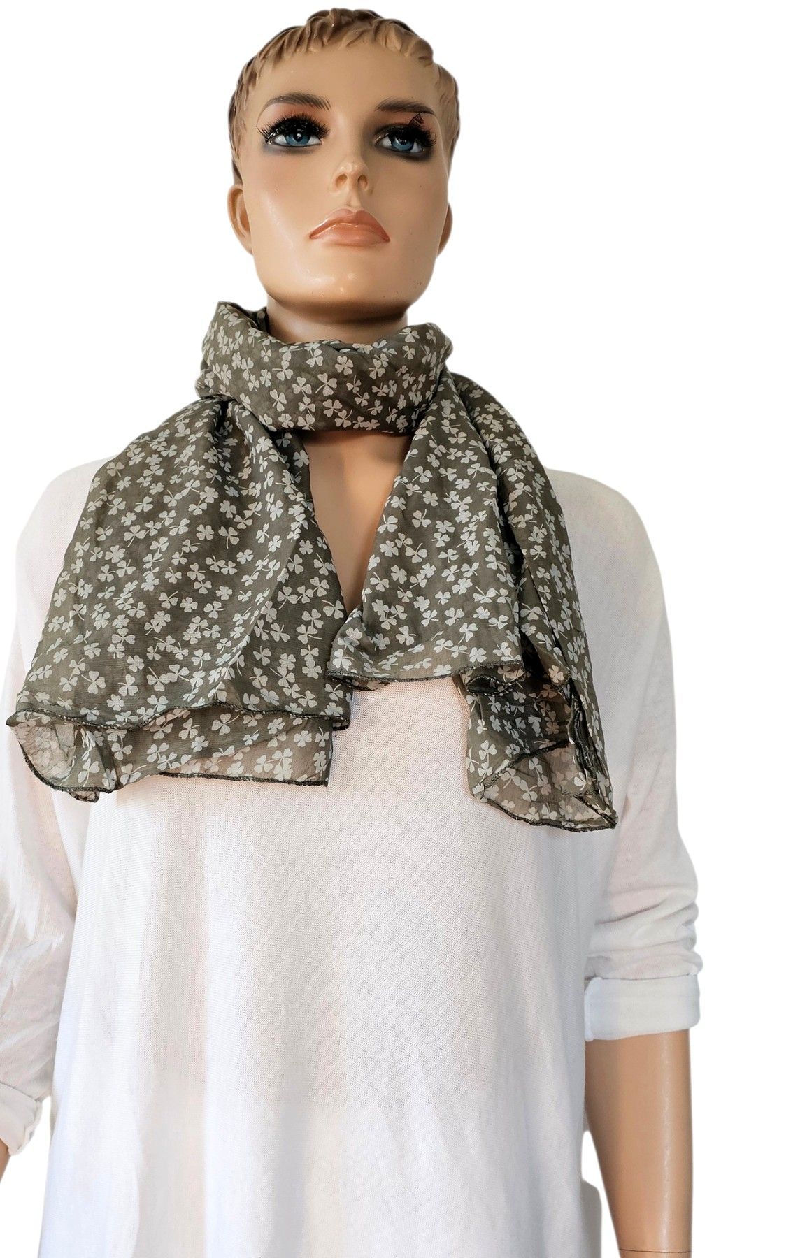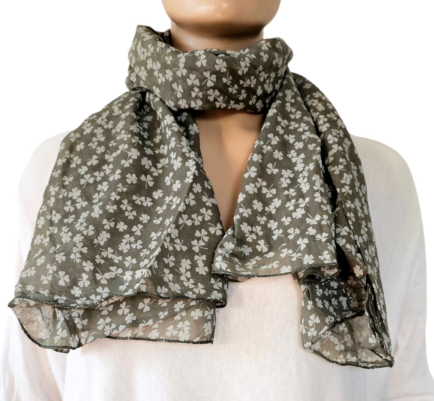 Italy Blogger Schal Halstuch Scarf Seide/Baumw. asymetrisch kleiner Blätterprint Grün