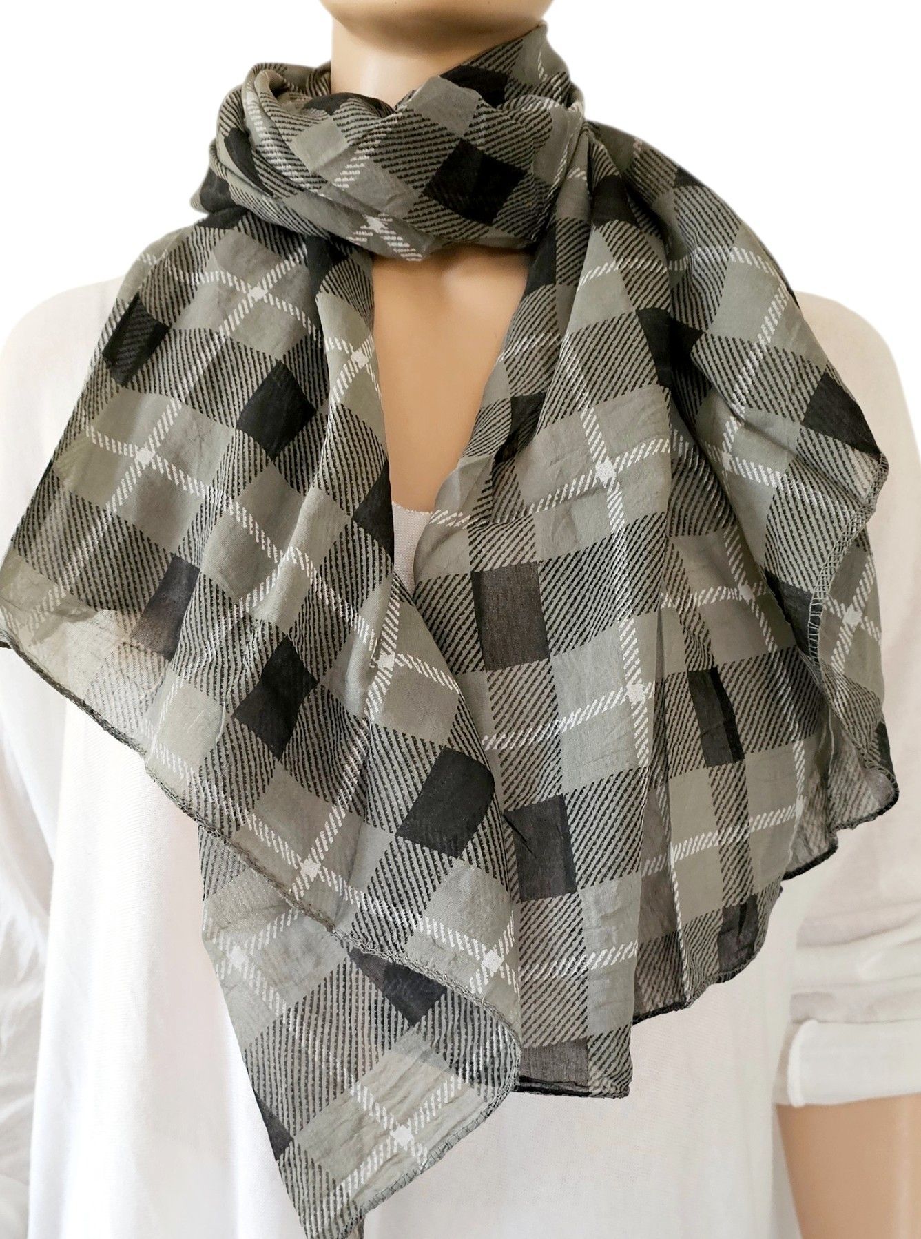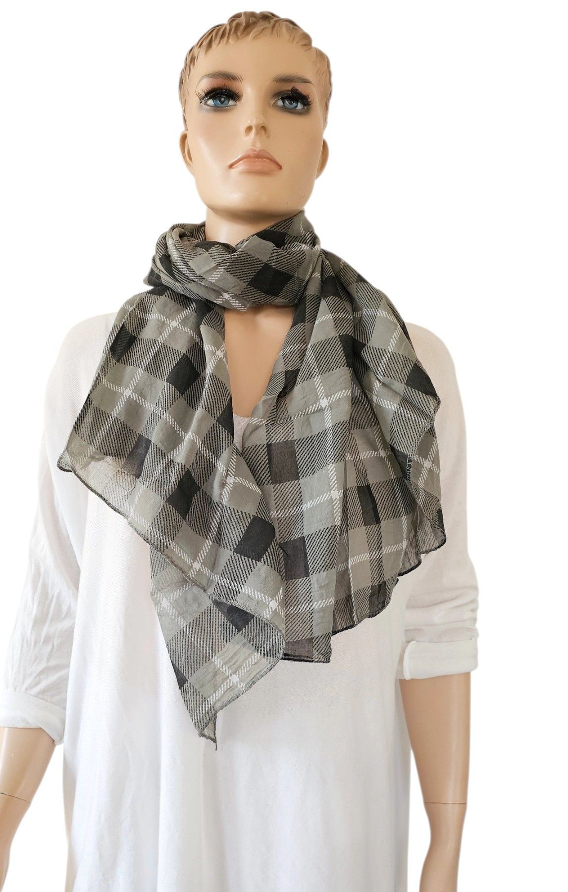 Italy Blogger Schal Halstuch Scarf Seide/Baumwolle asymetrisch kariert Grau/Schwarz