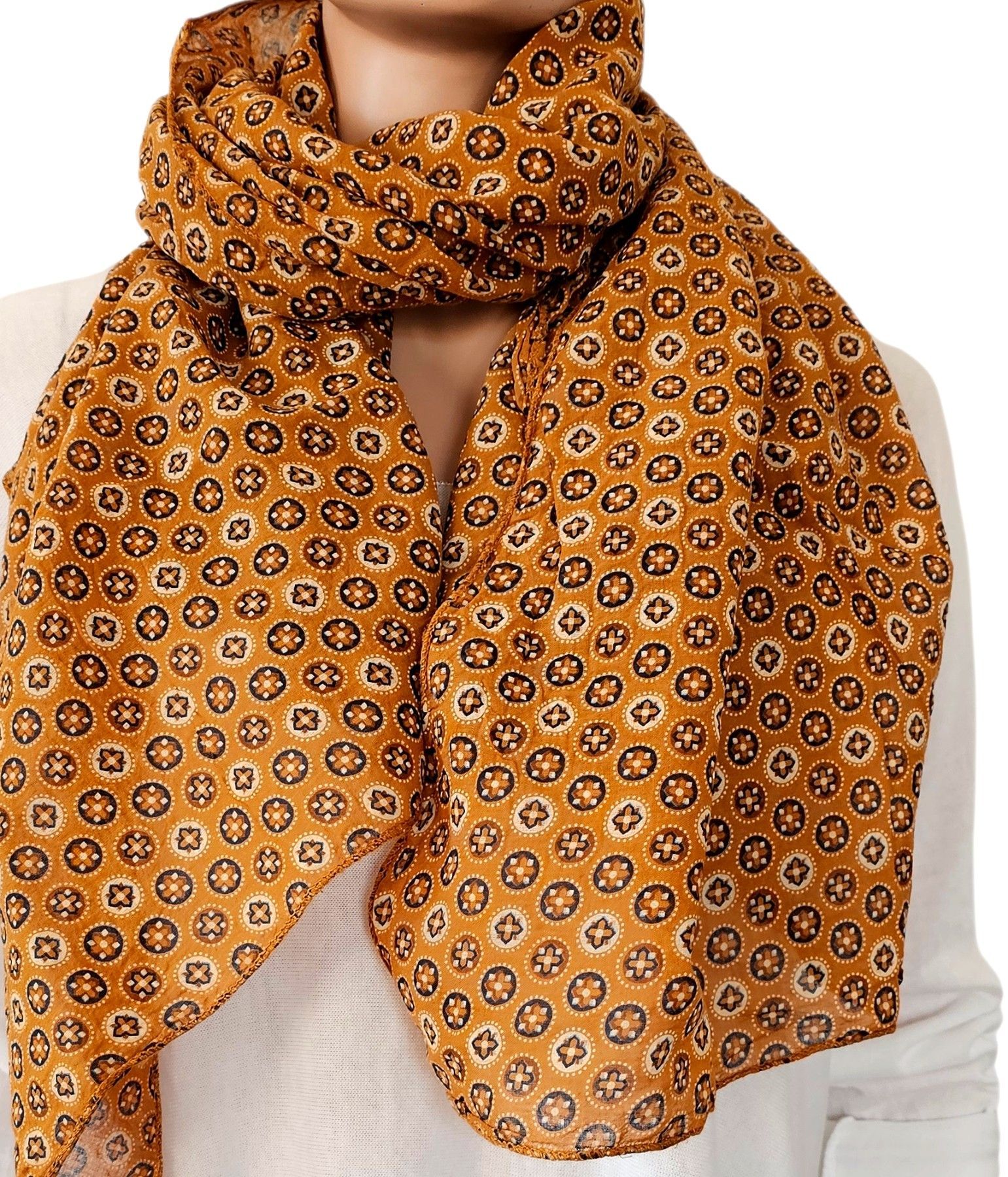 Italy Blogger Schal Halstuch Scarf Seide/Baumwolle asymetrisch Print Farbe: Curry