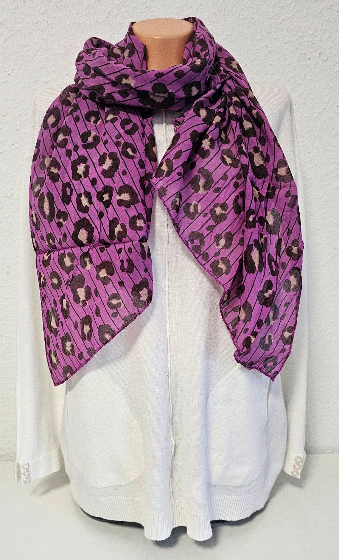 Italy Blogger Schal Halstuch Seide/Baumwolle asymetrisch Animal/Streifenprint Lila