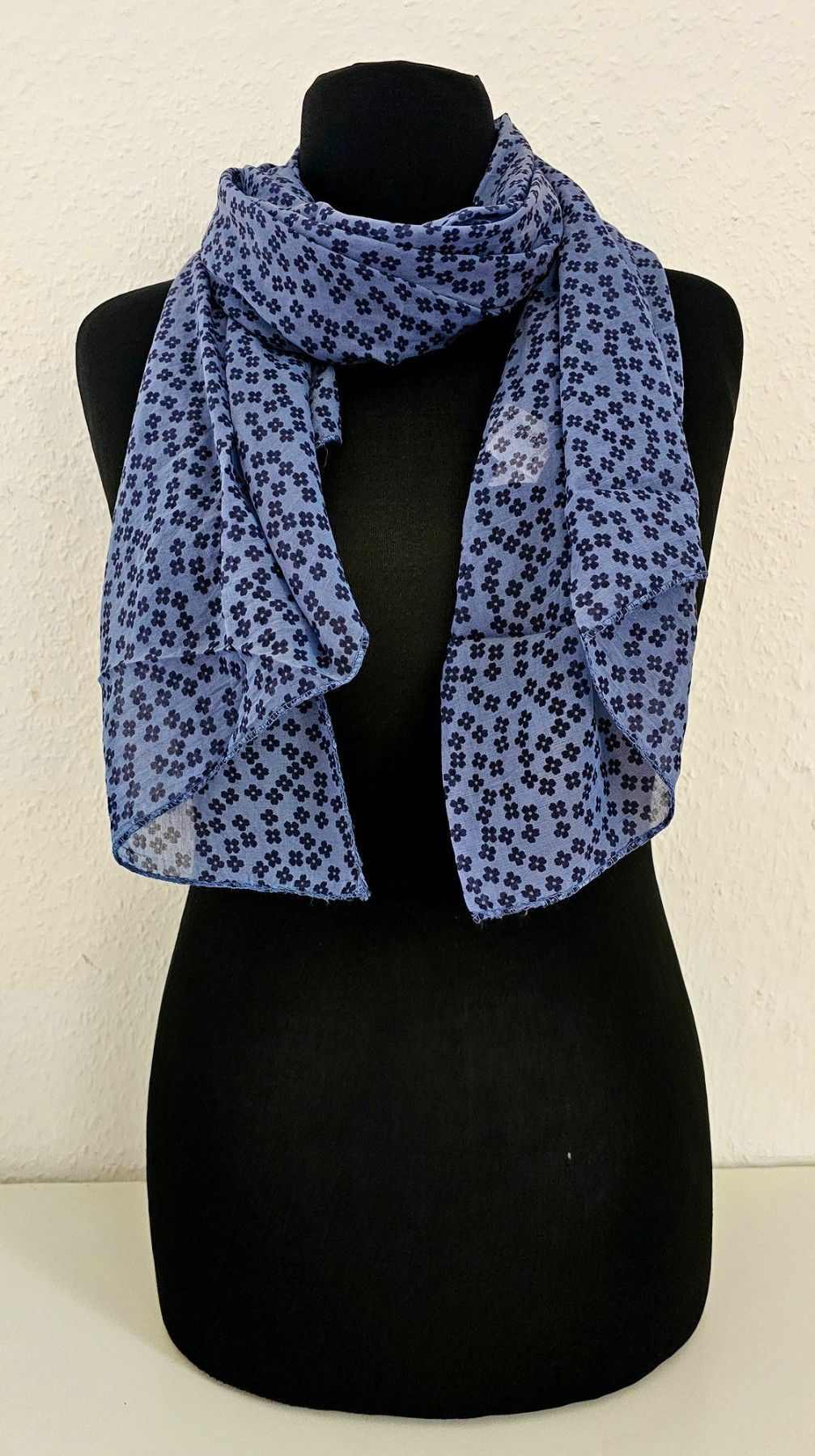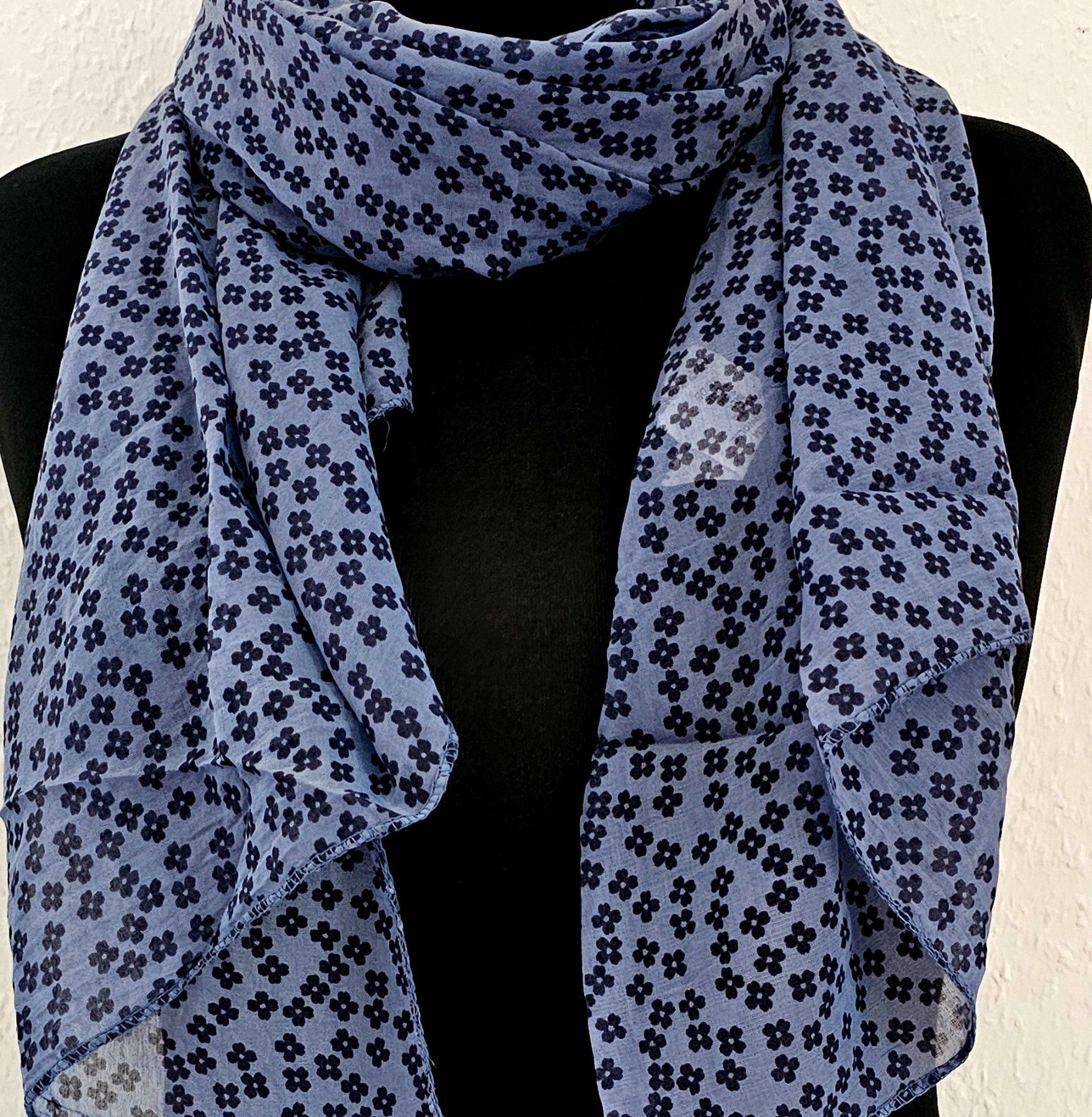 Italy Blogger Schal Halstuch Seide/Baumwolle asymetrisch Blütenprint Jeansblau