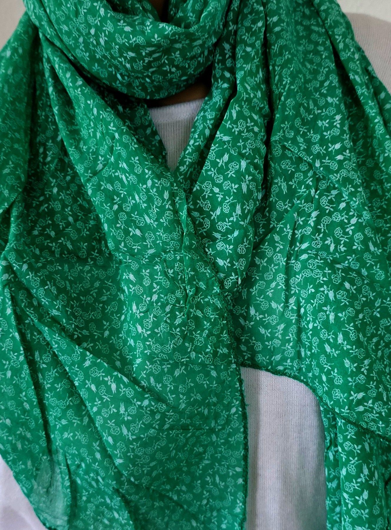 Italy Blogger Schal Halstuch Seide/Baumwolle asymetrisch dezente Blumen Grün